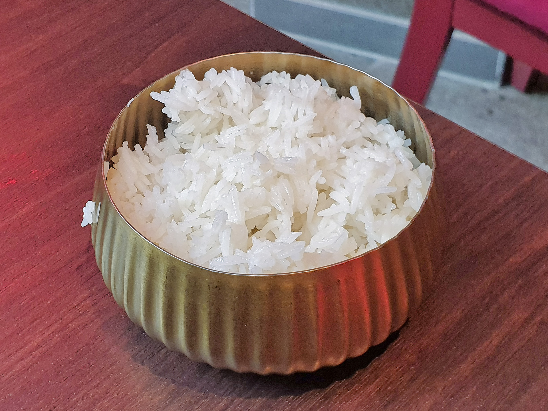 Als Beilage hatten wir Reis gewählt. Er war leicht klebrig, sehr lecker.