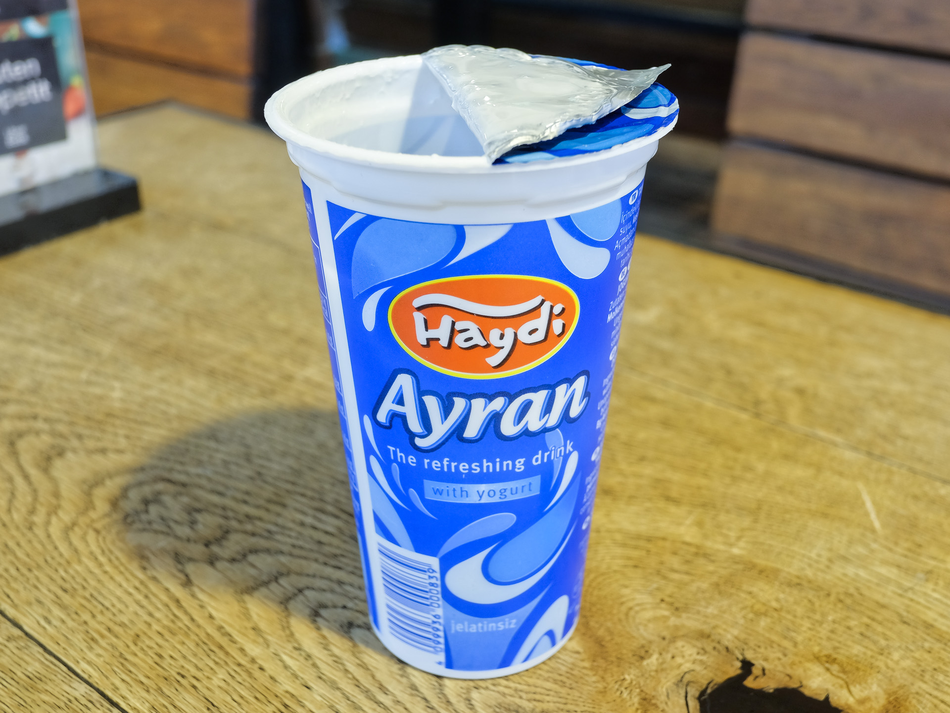 Zum Essen hatte ich ein Becher Ayran von Haydi (0,25 l für 2,20 €).