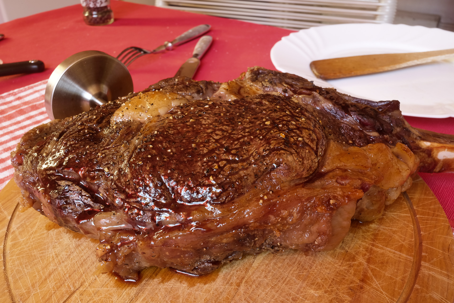 Heute gab es ein Tomahawk Steak aus der Metro. Nach meinen Experimenten mit veganen Fleischersatzprodukten musste es mal wieder richtiges Fleisch sein.