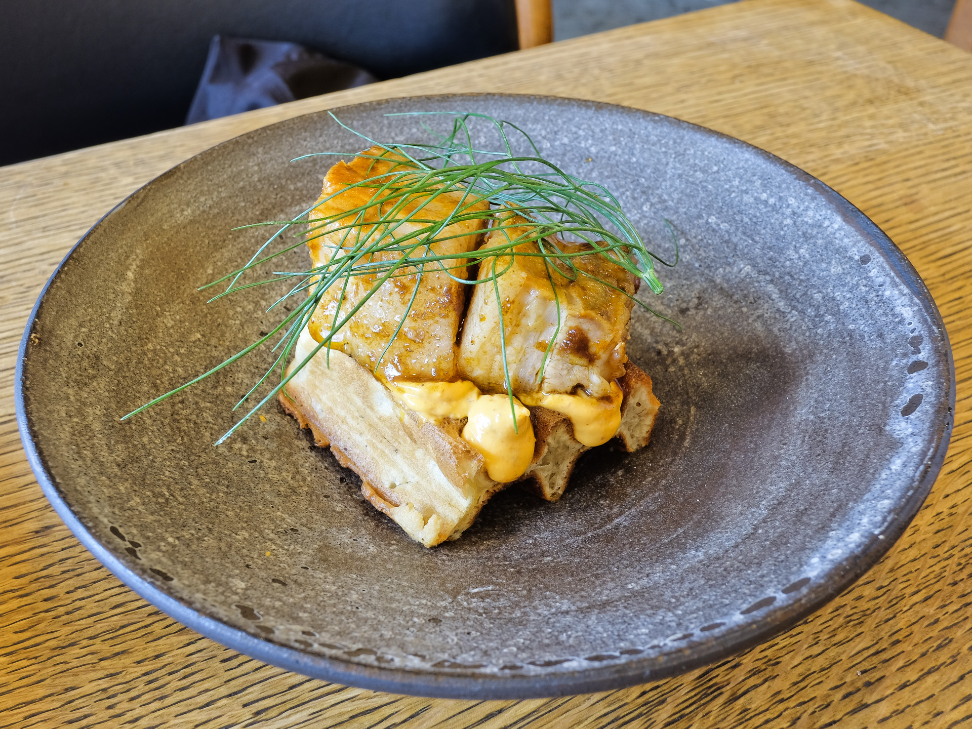 Schweinebauch und Waffel