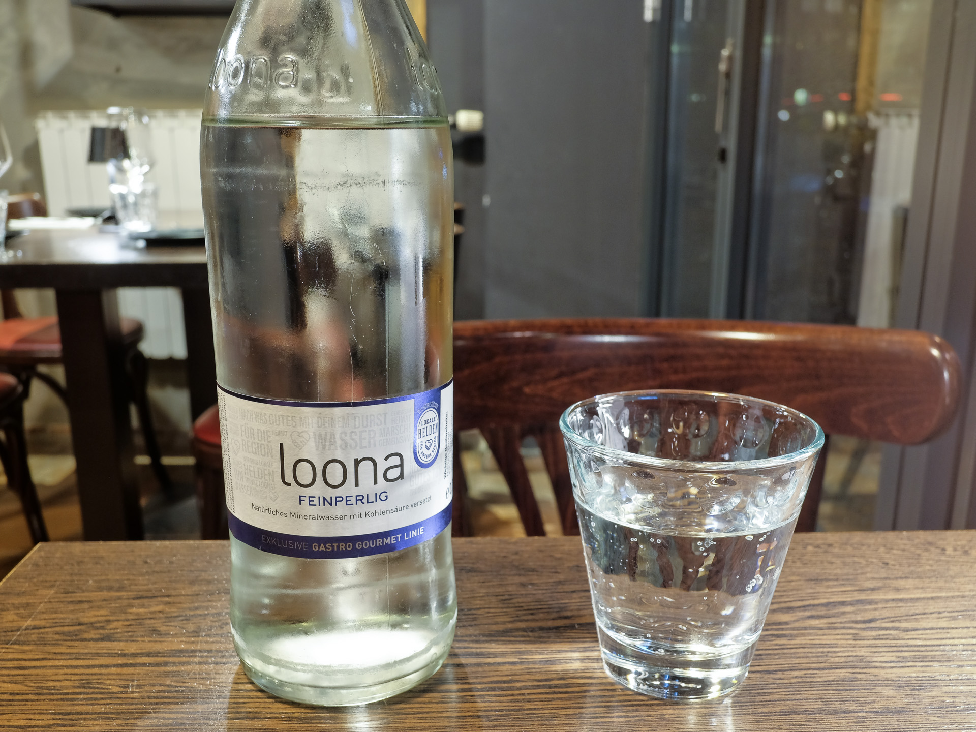 Zum Essen hatte ich eine Flasche Loona Mineralwasser (0,75 l für 7,00 €).
