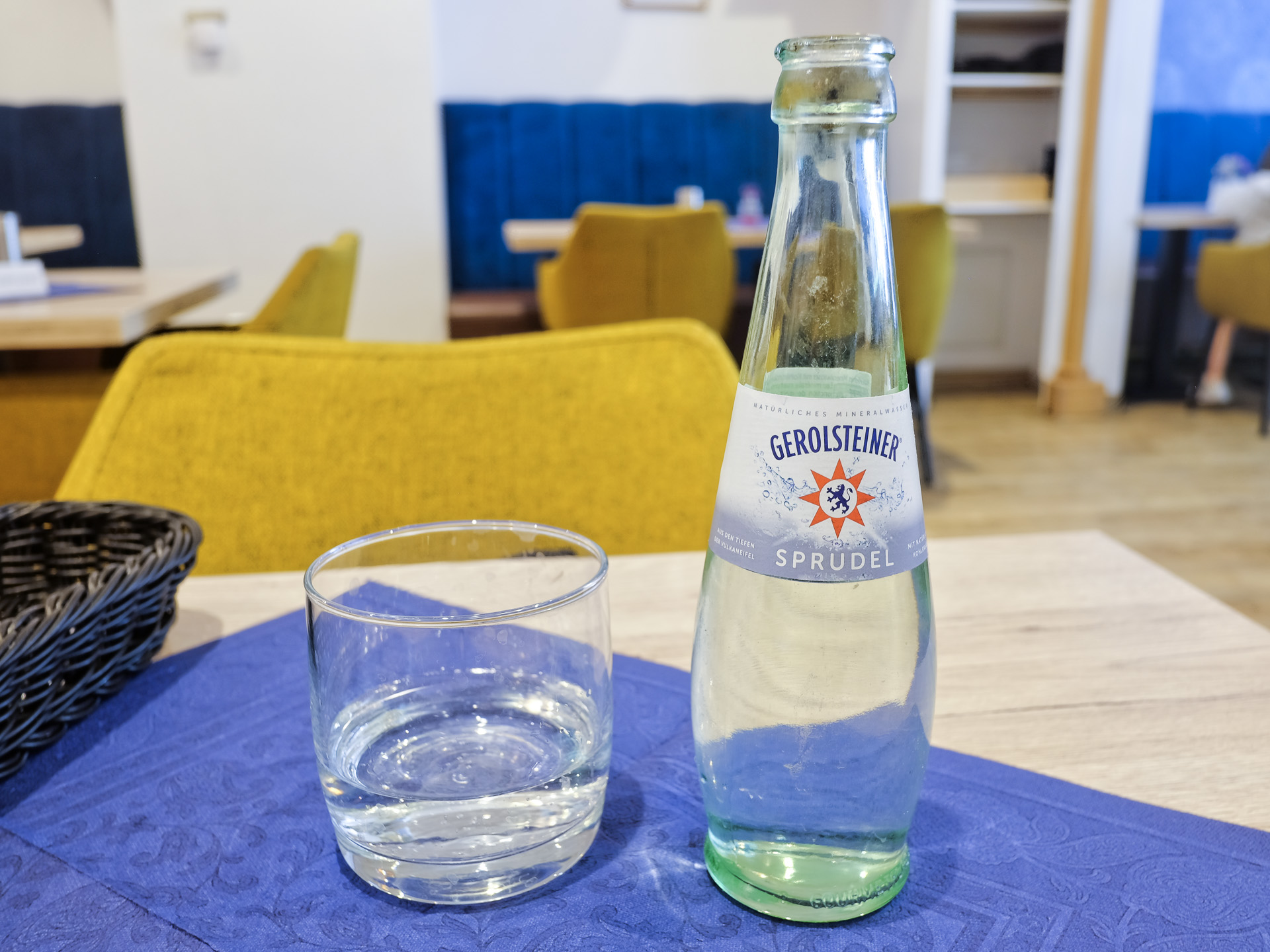 Zum Essen hatte ich eine Flasche Gerolsteiner Mineralwasser (0,25 l für 2,50 €).