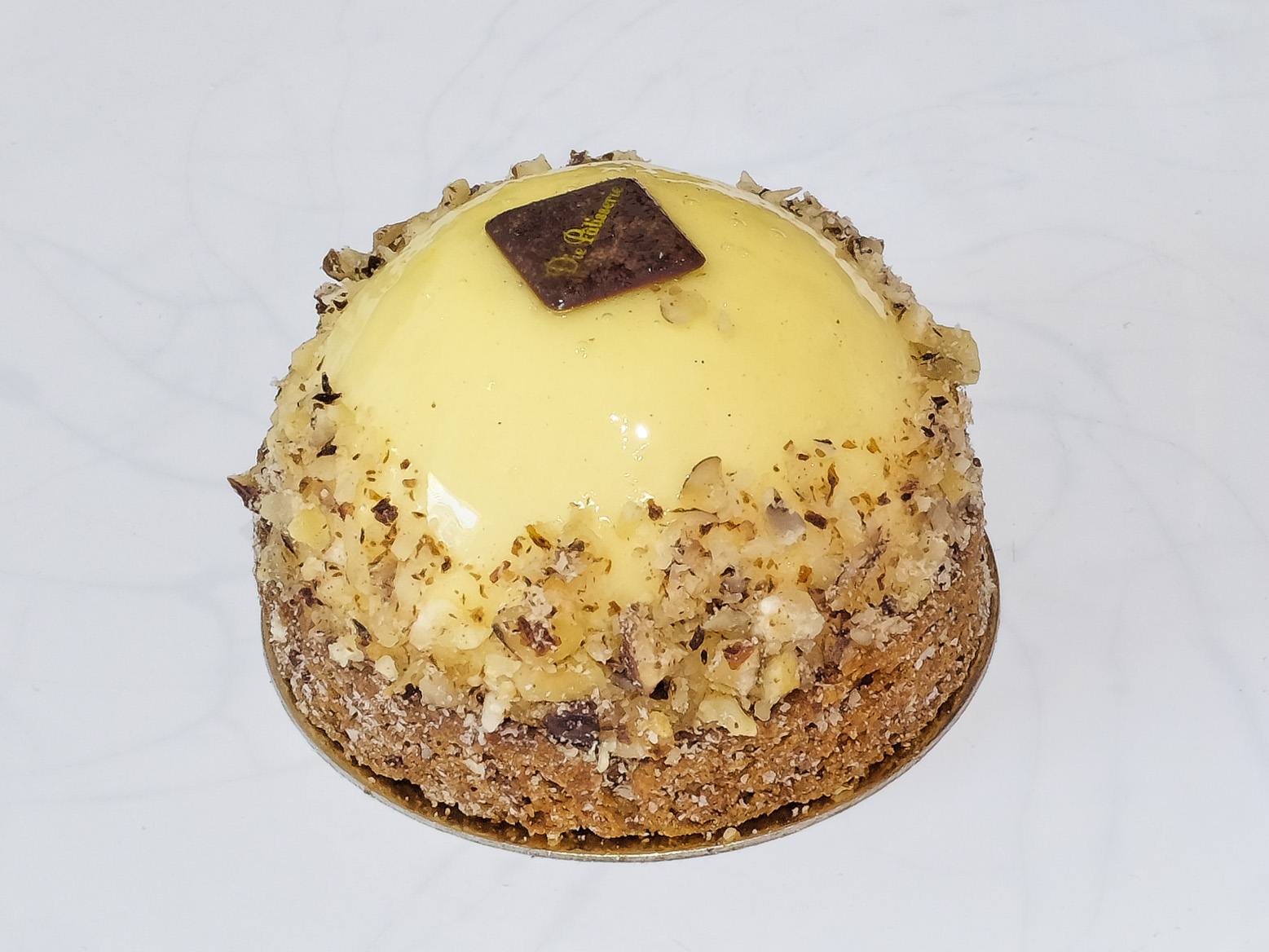 Die Creme hatte eine zarte Textur und ein feines Yuzu Aroma, bedeckt war sie mit einer dünnen Schicht Tortenguss. Der bretonische Nuss Mürbeteig hatte eine angenehme Textur und eine feines Aroma. Sehr lecker.
