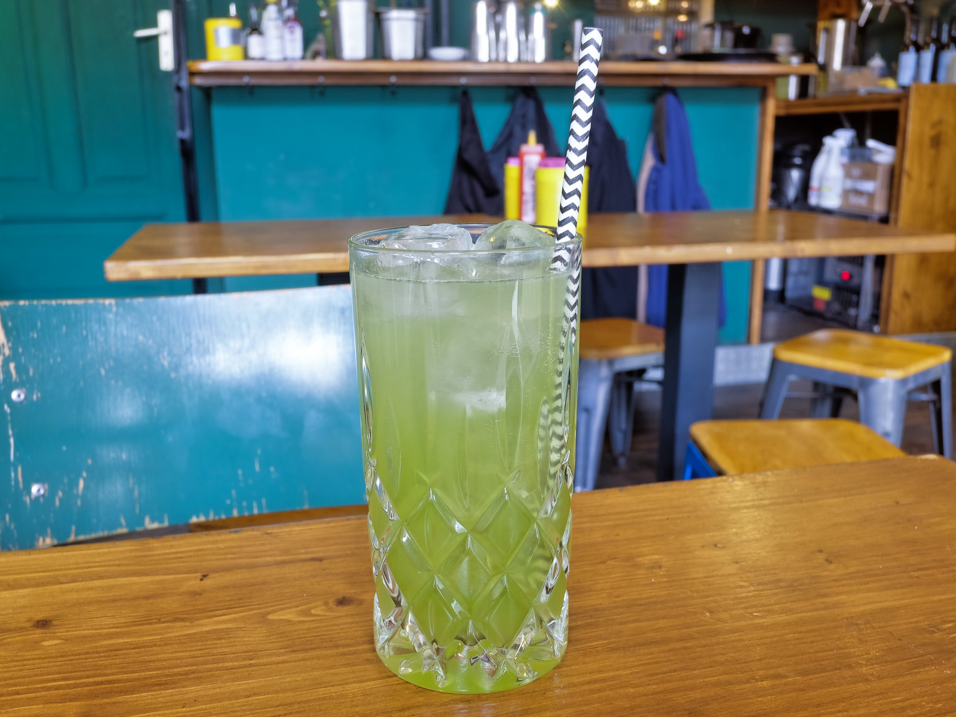 Die Limonade wurde mit Pandan und Minz Sirup zubereitet und mit Thomas Henry Sodawasser aufgefüllt. Sie war leicht süßlich, leicht säuerlich und schmeckte etwas nach Minz und wenig nach Pandan. Gerade noch sehr lecker.