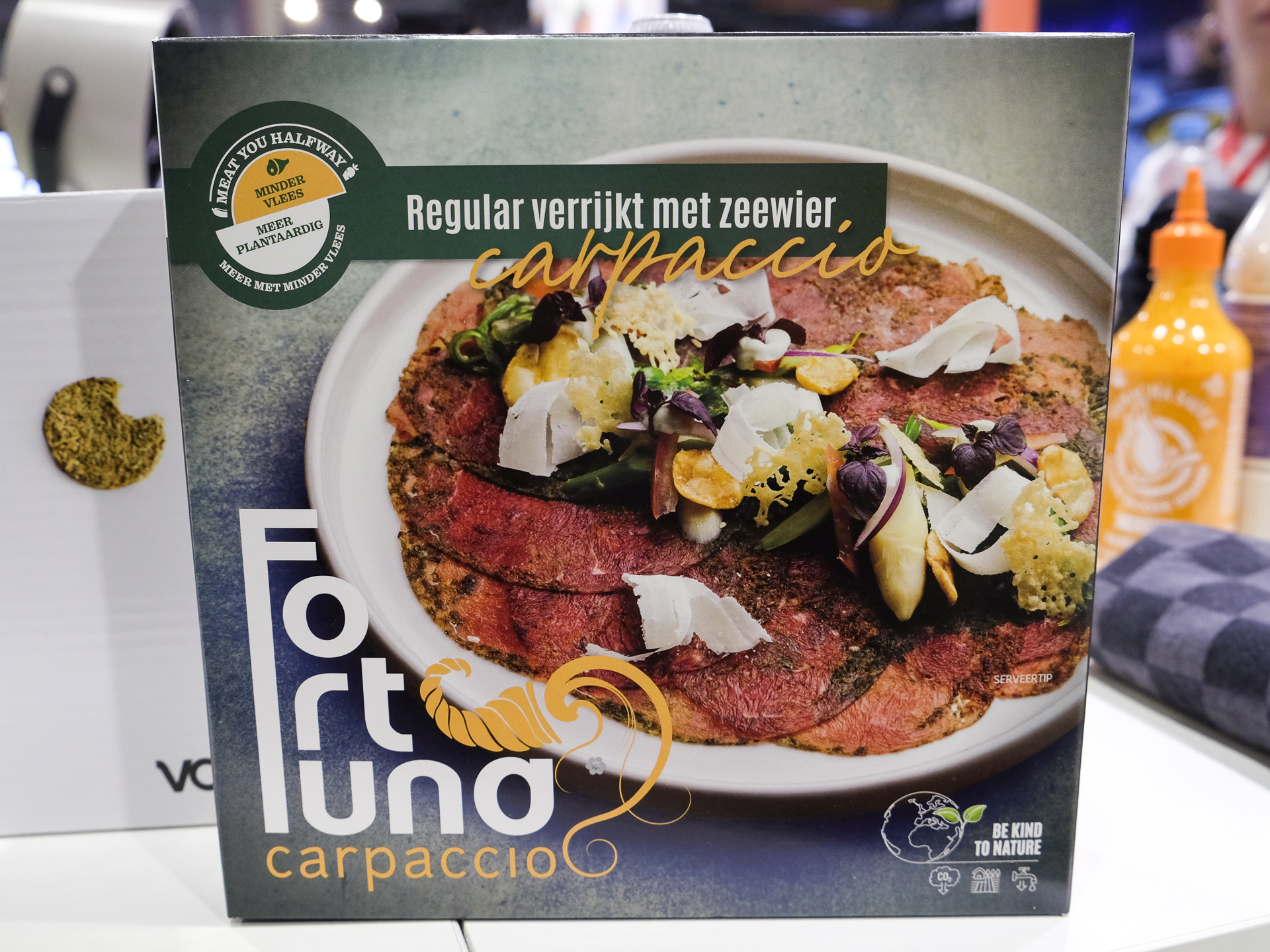 Carpaccio, wie Sie es von uns gewohnt sind aber mit einem besonderen Clou. Die Welt verändert sich, die Menschen achten immer mehr auf ihre Ernährung, und wir möchten unseren Beitrag dazu leisten. Mit diesem Hybrid-Carpaccio sind wir stolz darauf, Teil der Marke Meat-You-Halfway zu sein. Bei diesem Konzept wird ein Teil des Fleisches durch besonders schmackhaftes Gemüse wie Algen ersetzt. Unser Fortuna Regular Carpaccio enthält nicht weniger als 25 % Algen, was bedeutet, dass pro Portion 25 % eniger Fleisch enthalten ist. So leisten wir einen wichtigen Beitrag zur Reduzierung von CO2-Emissionen. Damit kann jeder eine nachhaltigere Alternative wählen, ohne auf den Genuss von Carpaccio verzichten zu müssen. (Zitat Fortuna Carpaccio)