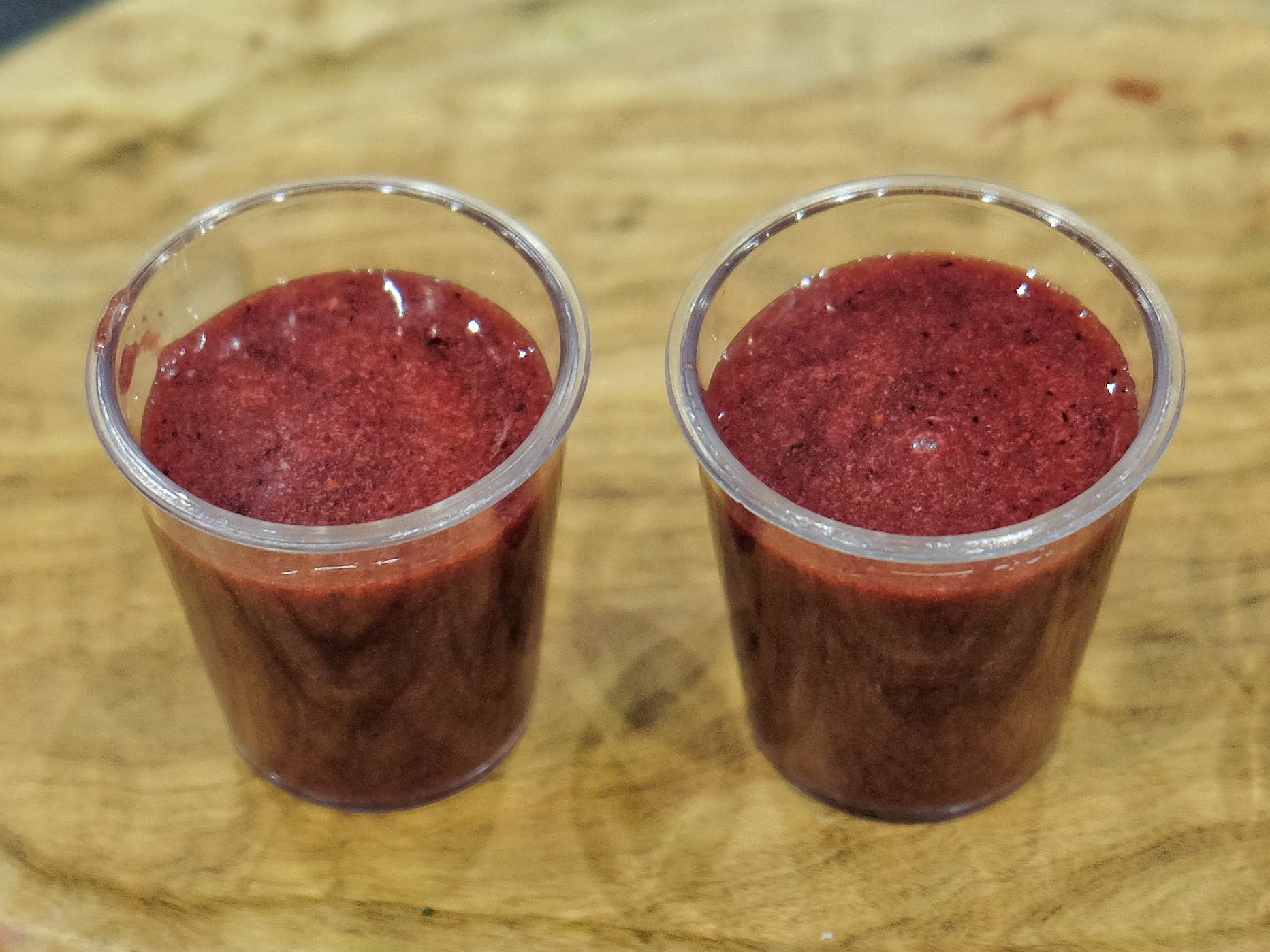 Der Smoothie war dickflüssig, fruchtig und hatte eine feine Säure, sehr lecker.