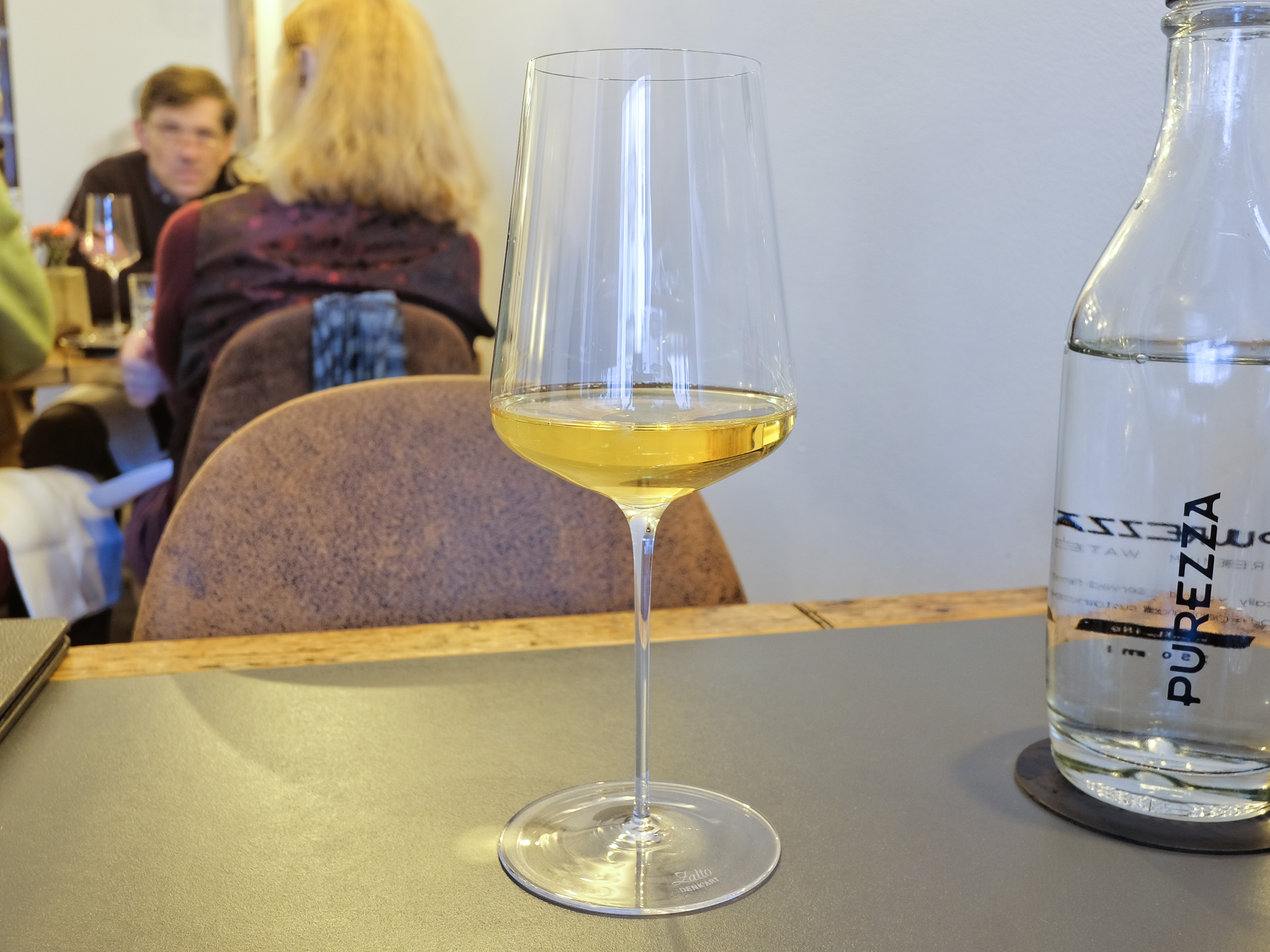 Das Getränk hatte eine dezente aber komplexe Nase, einen guten Körper mit feiner Säure, dezenter Süße, leicht fruchtig, leicht etherisch und mittlerer Länge. Für einen "Perlwein" enthielt er aber recht wenig Kohlensäure. Sehr lecker, auf jeden Fall eine bessere Alternative zu alkoholfreiem Wein.