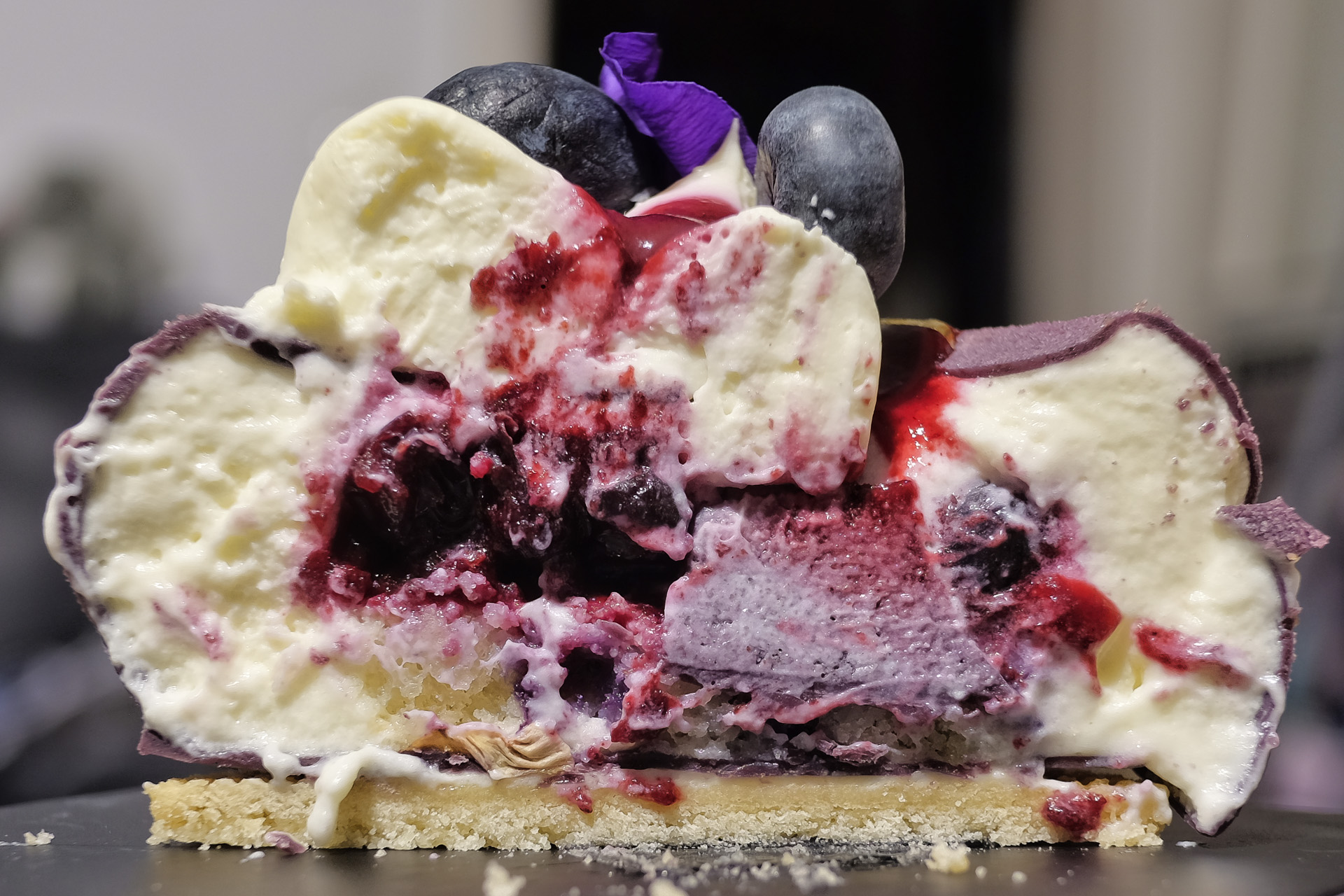 Mit Liebe handgefertigt, fein dekoriert und getoppt mit frischen Heidelbeeren wird es zu einem kleinen Kunstwerk, das einen