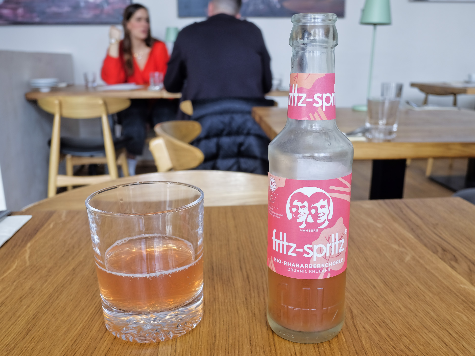 Zum Essen hatte ich eine kleine Flasche Rhabarber Schorle von Fritz Kola (0,2 l).