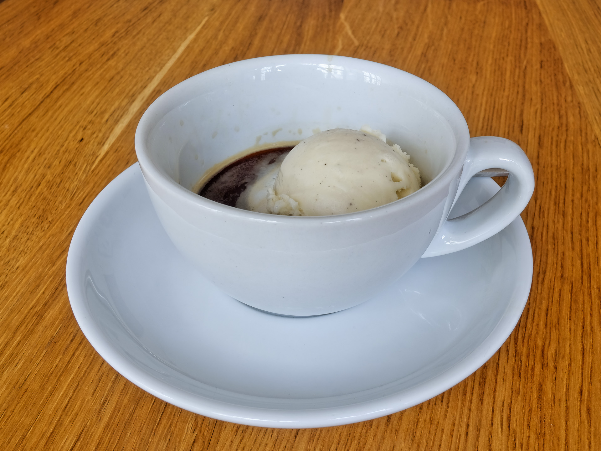 Das Vanille Eis war schön cremig und hatte ein feines Aroma. Dazu gab es einen kräftigen Espresso. Sehr lecker.