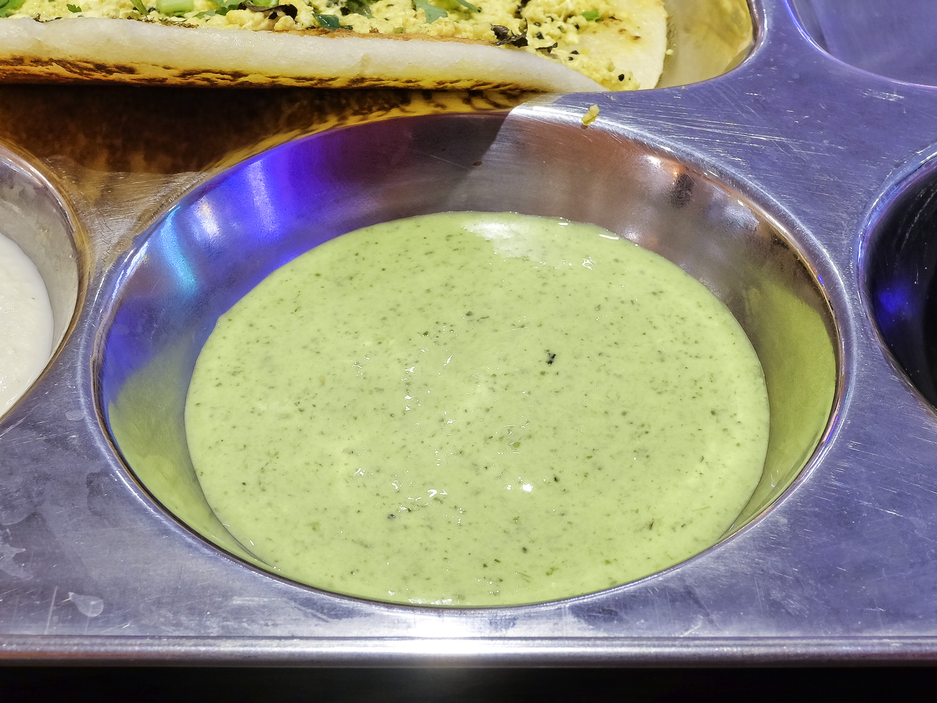 Das Koriander Chutney hatte eine feines Säure und eine pikante Schärfe, sehr lecker.
