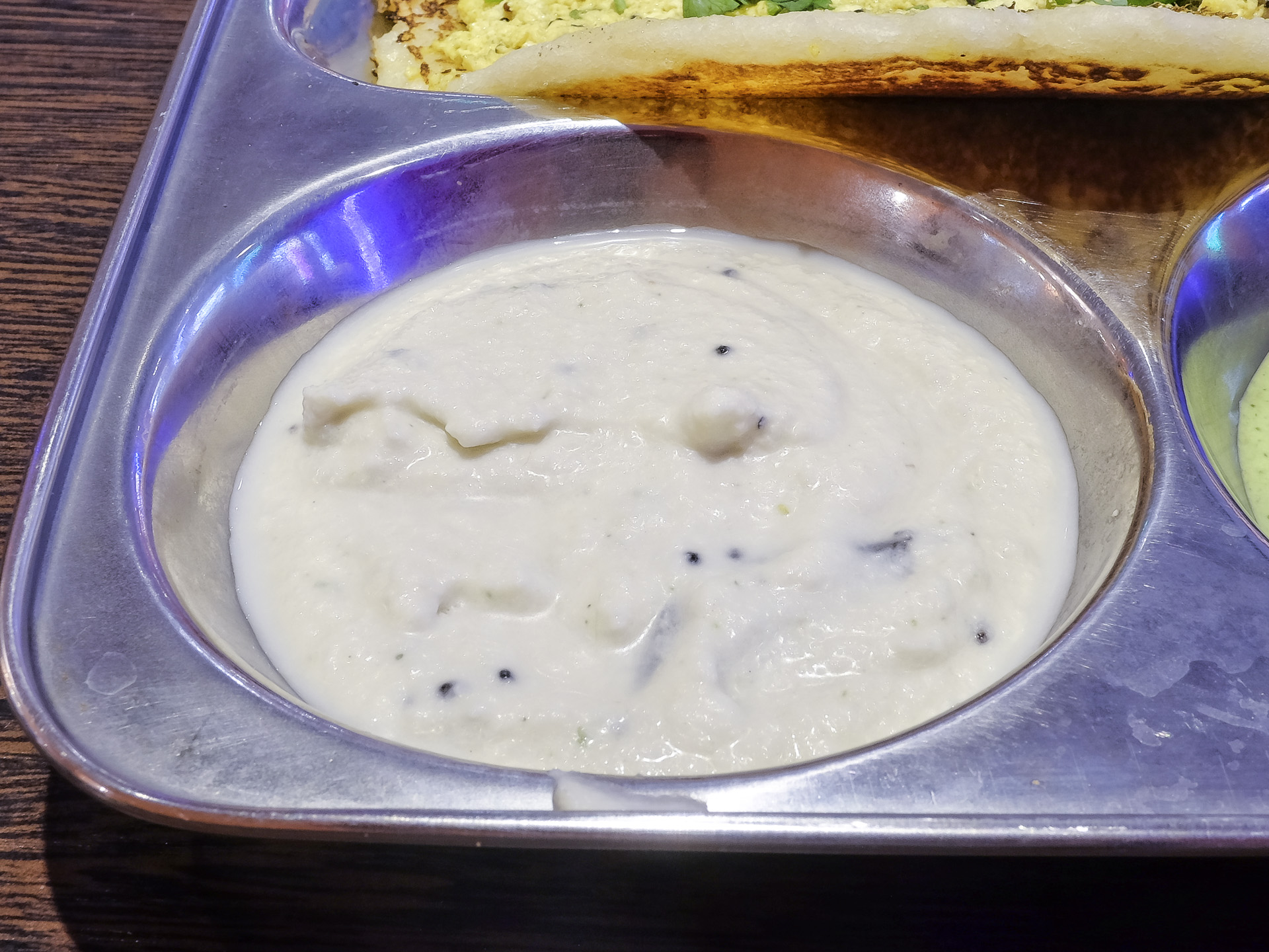 Das Kokosnuß Chutney war recht mild und hatte ein dezentes Aroma, gerade noch sehr lecker.