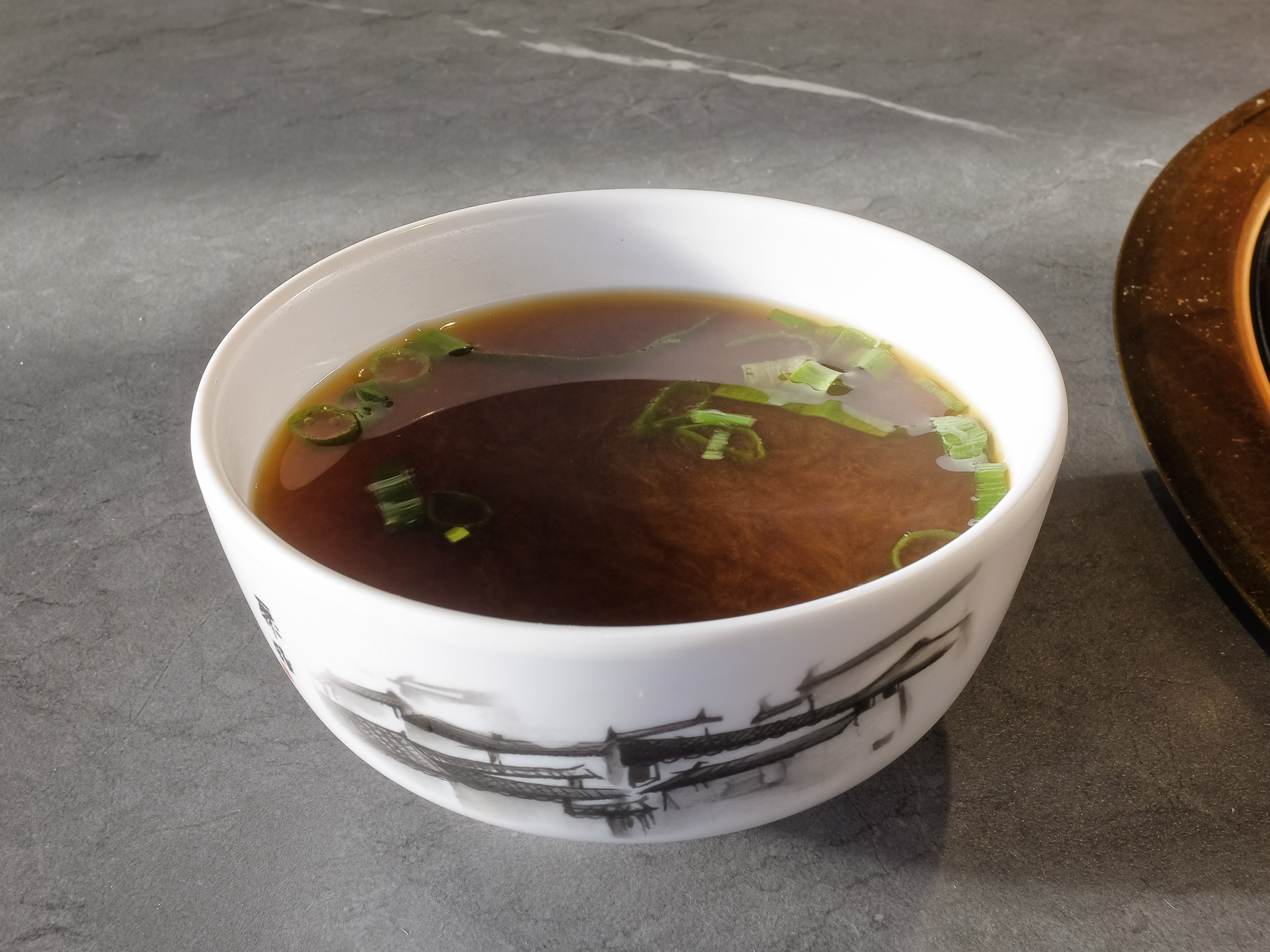 Das Gericht stammte aus der Mittagskarte, dazu gehörte die Misosuppe.