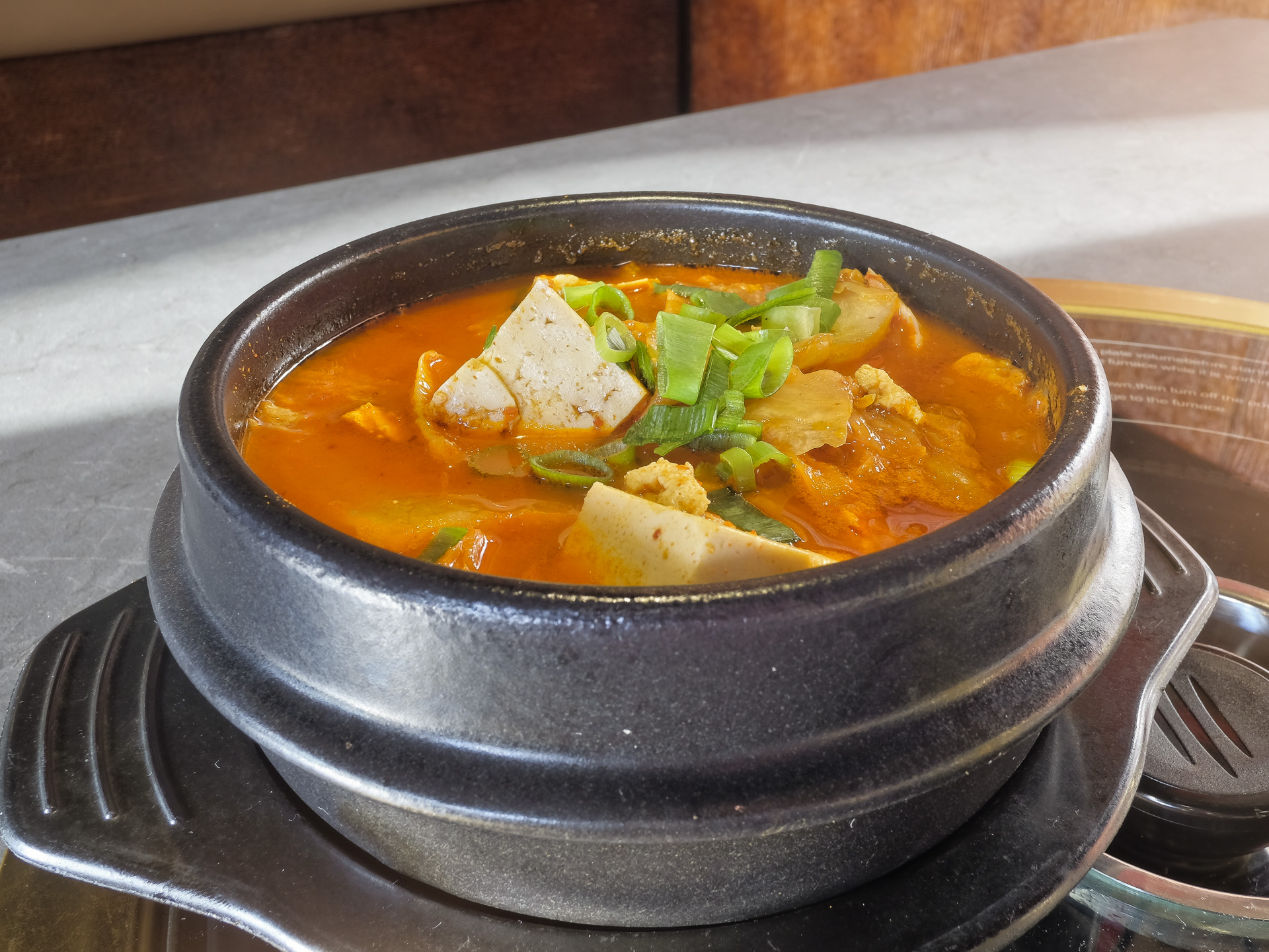 Koreanischer scharfer Tofu Eintopf mit eingelegtem Chinakohl