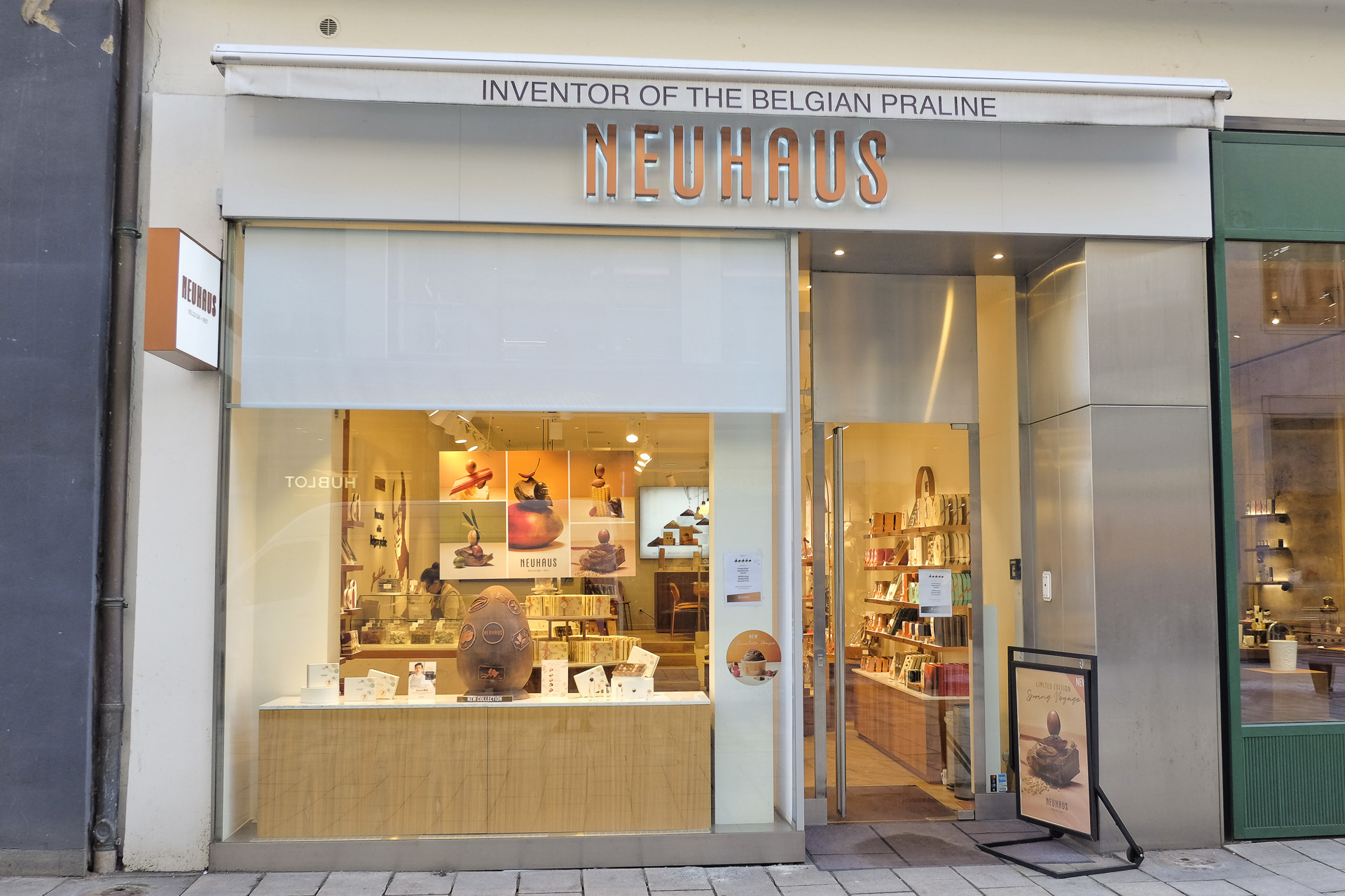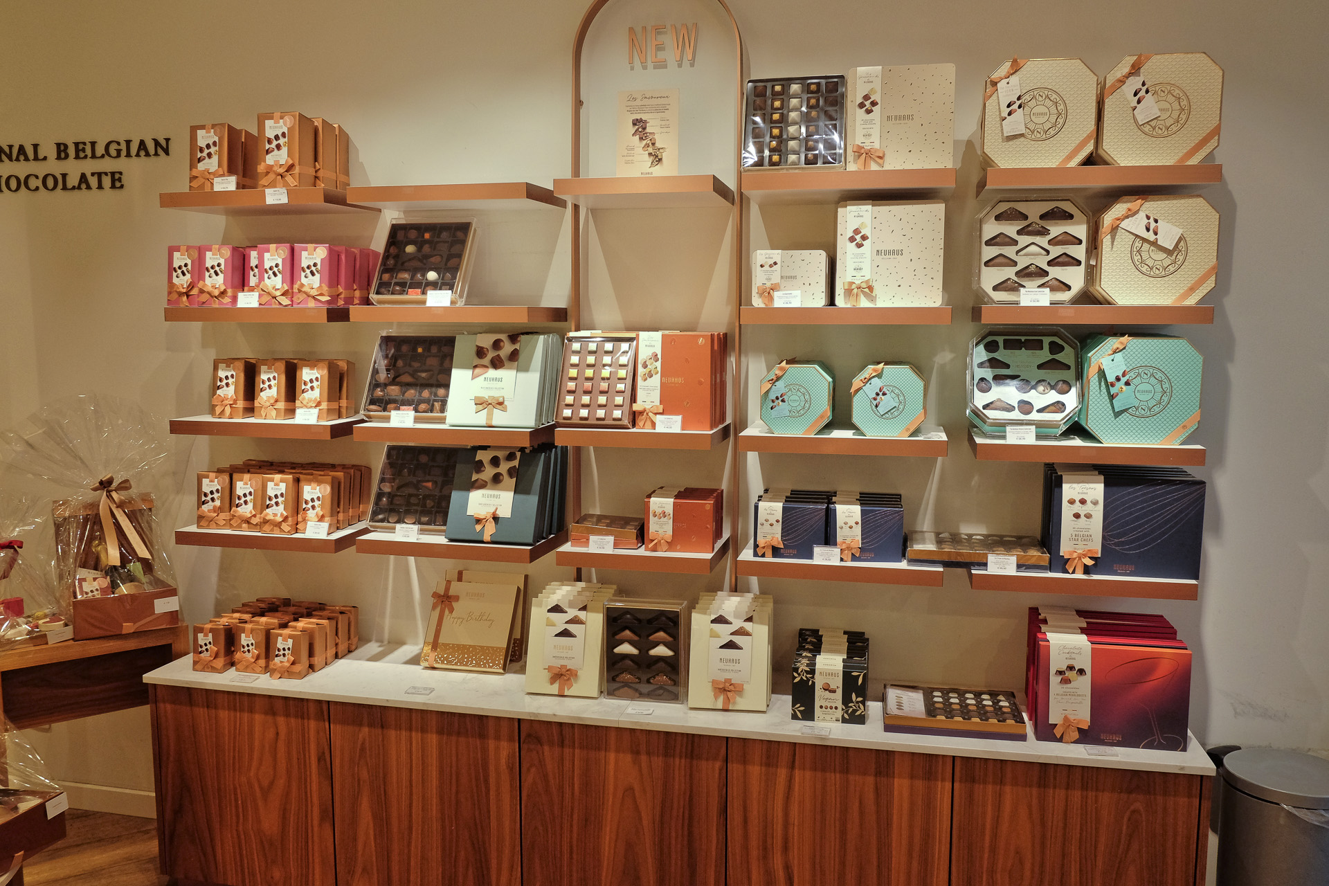 von Dubai und in Belgien neu gestaltet. (Zitat Neuhaus Chocolatier)