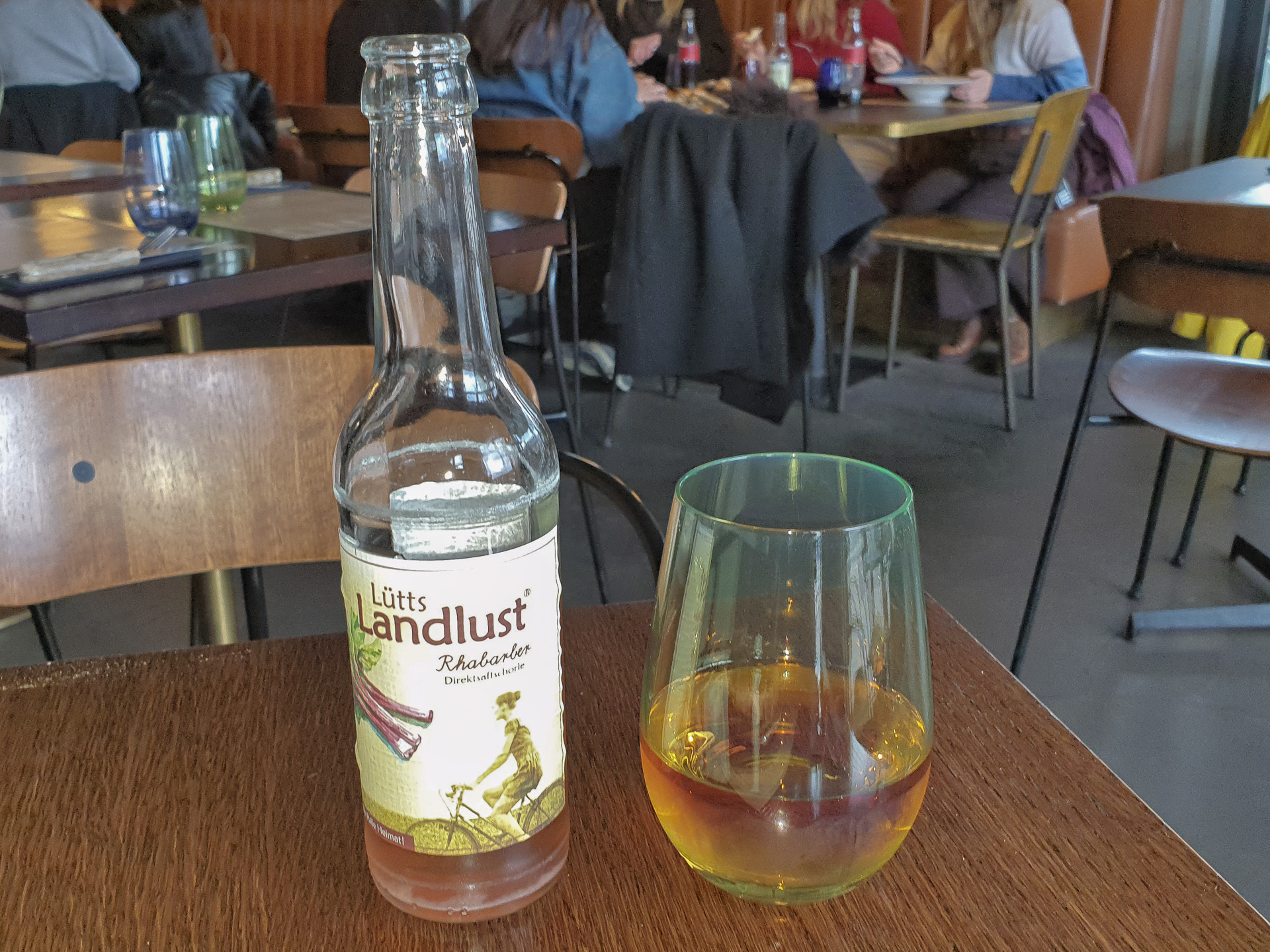 Zum Essen hatte ich eine Flasche Lütts Landlust Rhabarber Schorle (0,33 l für 4,20 €).
