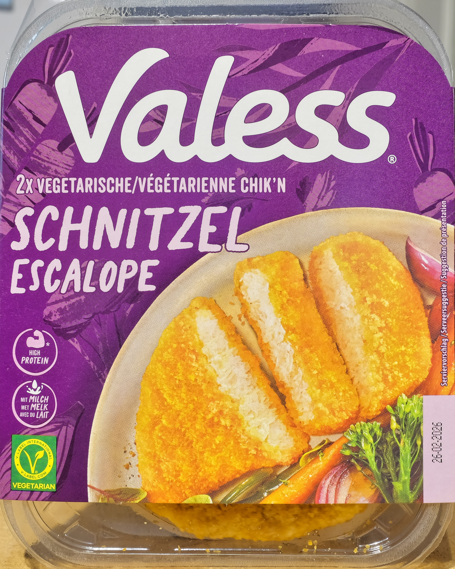 Das "Schnitzel" hatte eine krosse Panade, es war war recht dünn und hatte eine angenehme Textur. Geschmacklich war es recht neutral und erinnerte nicht an ein richtiges Schnitzel. Für ein Fleischersatzprodukt noch sehr lecker.