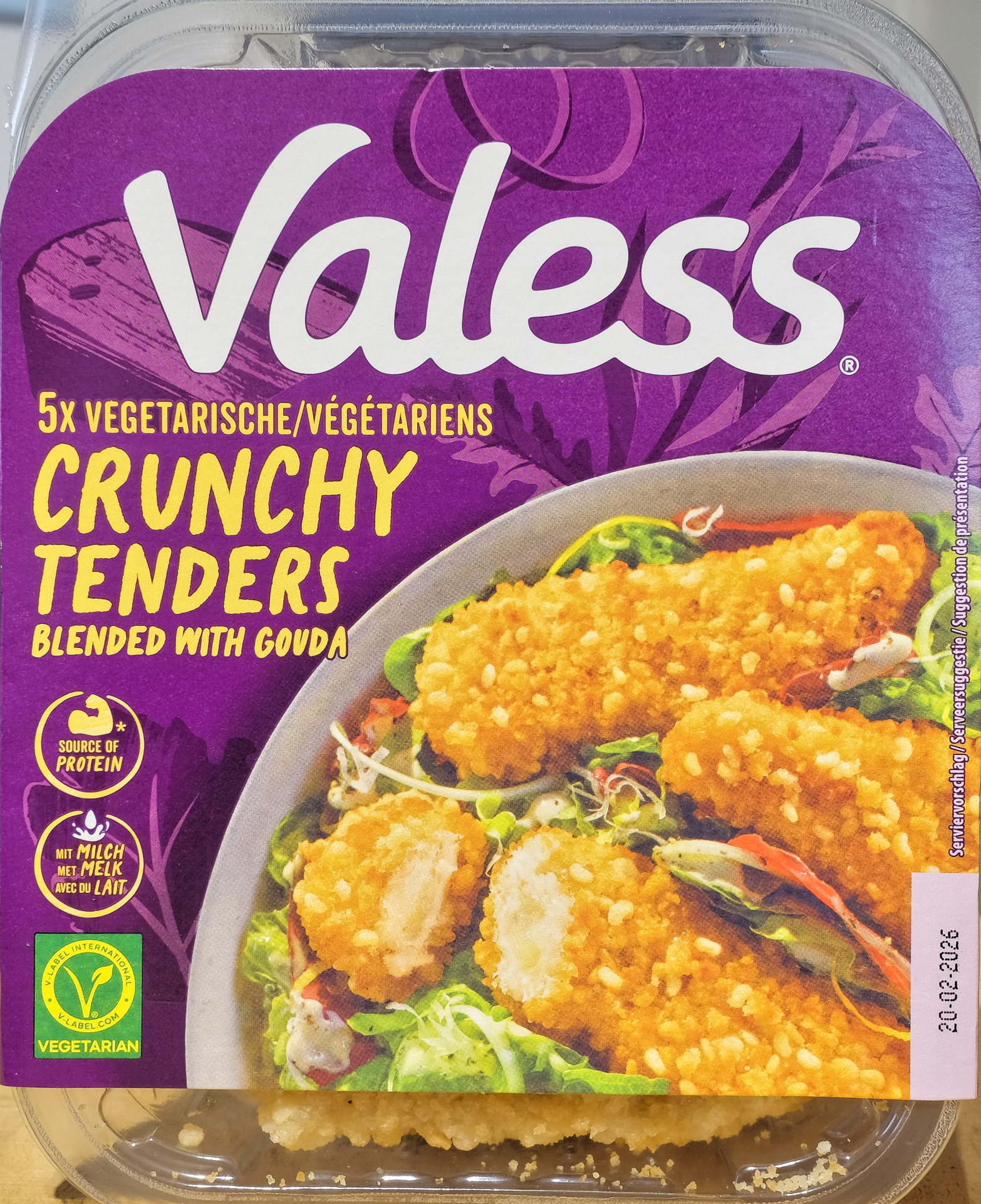 Die einzigartige Mischung aus Valess Chik'n und Gouda-Käse macht die Crunchy Tenders innen superzart. Mit einer extra