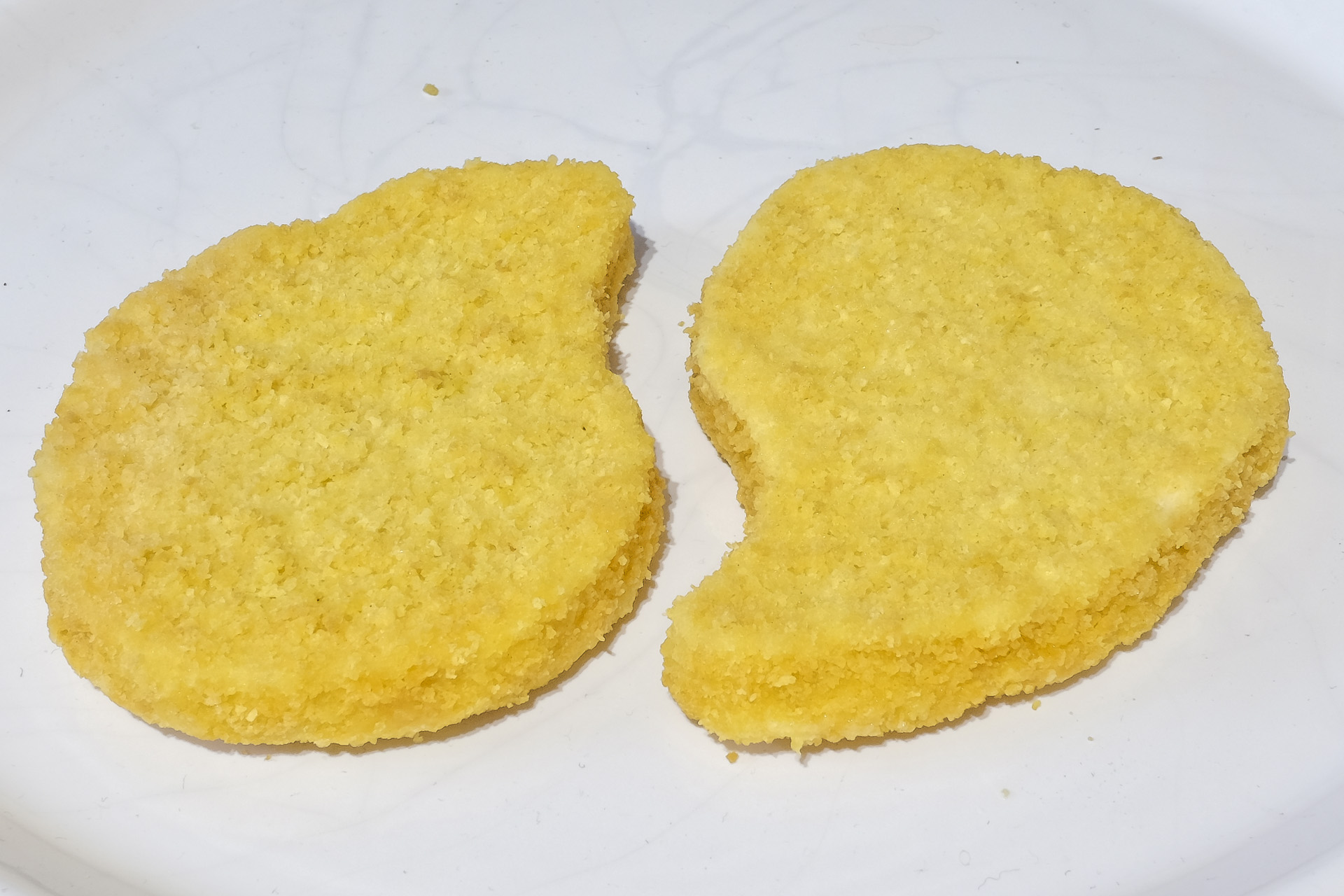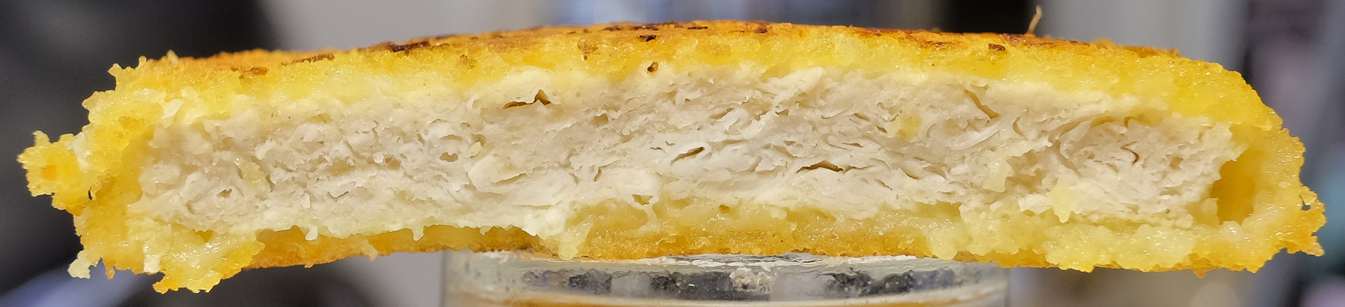 Das "Schnitzel" hatte eine krosse Panade, die Gouda Füllung war dank Schmelzsalzen geschmolzen. Das "Schnitzel" war recht dünn und hatte eine angenehme Textur. Geschmacklich war es recht neutral und erinnerte nicht an ein richtiges Schnitzel. Für ein Fleischersatzprodukt noch sehr lecker.