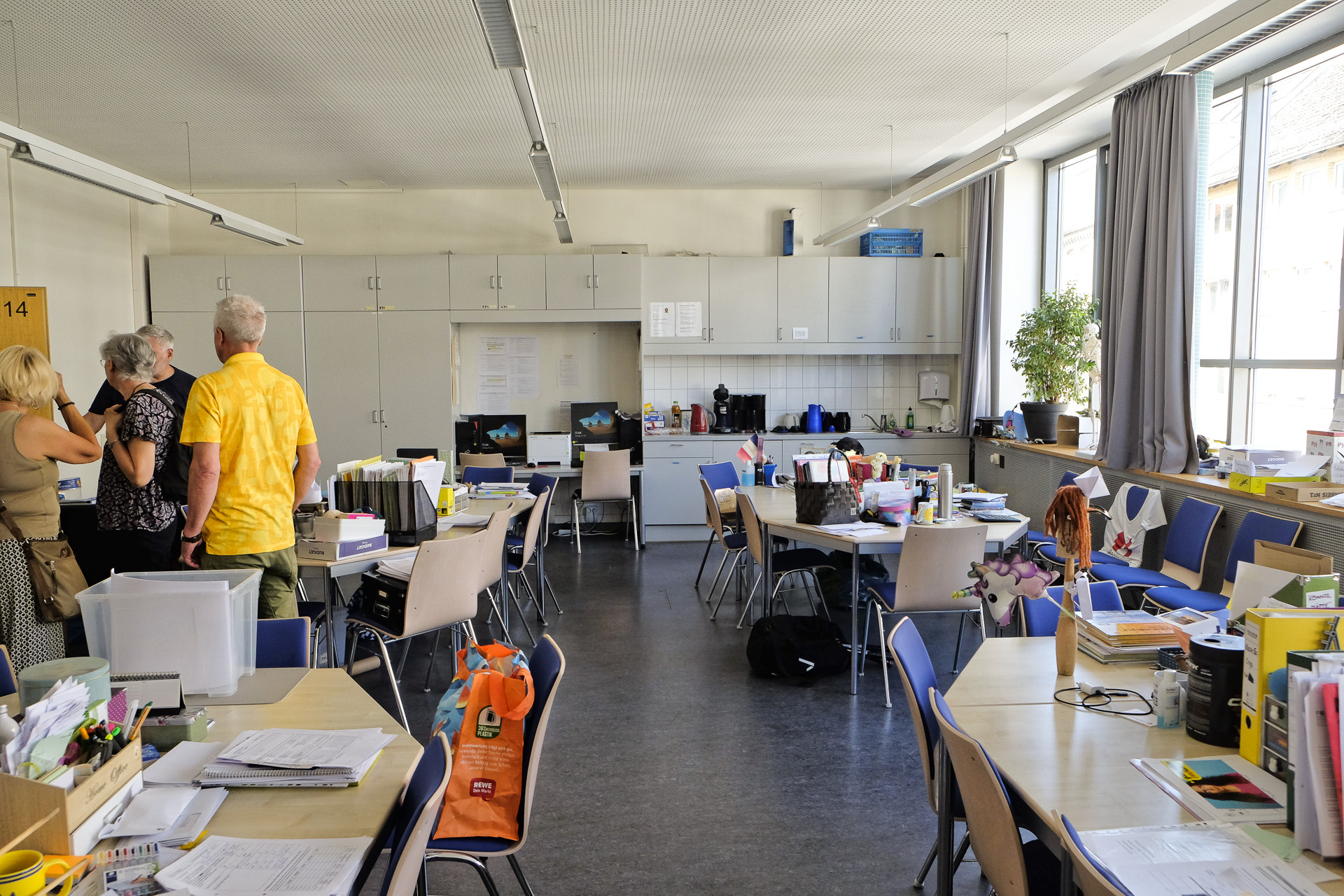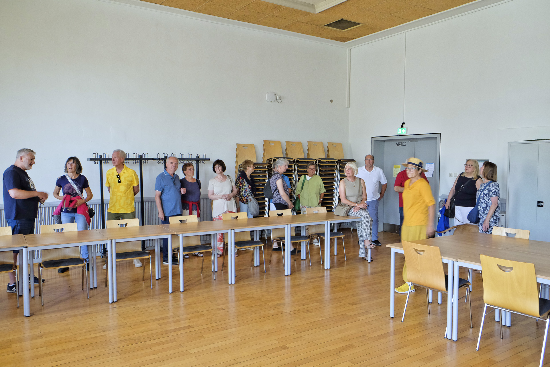 Nach einem kleinen gemeinsamen Umtrunk bekamen wir vom Hausmeister Heinz Stermann noch eine interessante Führung durch unsere ehemalige Schule.