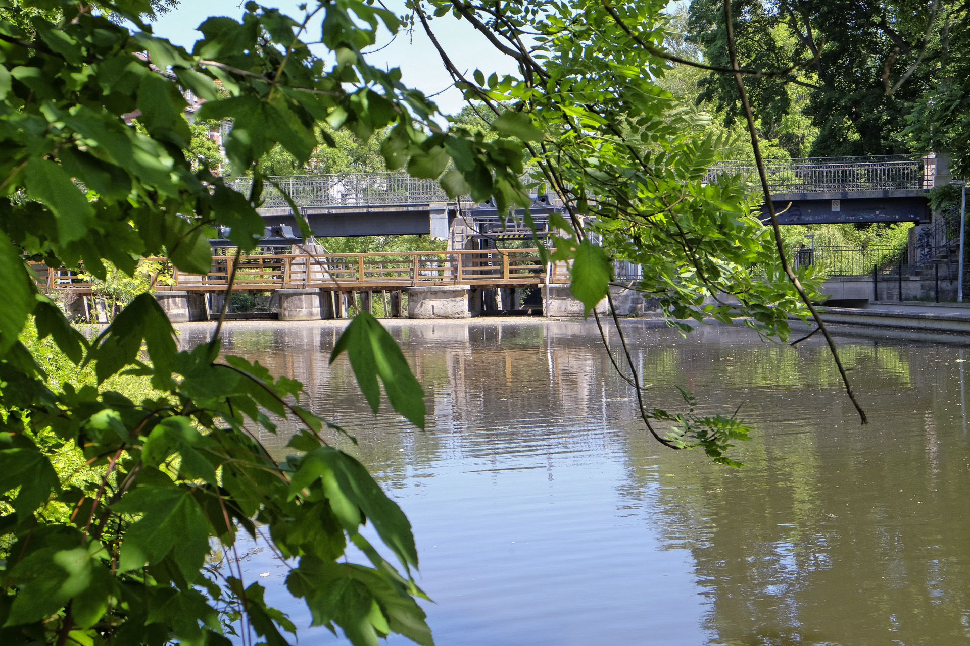 Ein Blick vom Bootsanleger auf das Petriwehr.