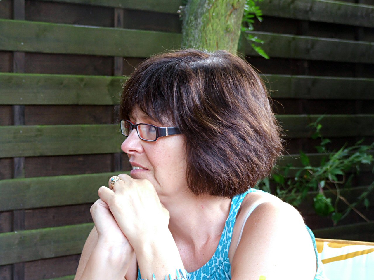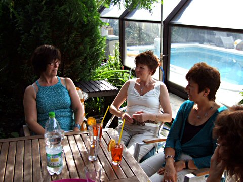 Zum Klönen haben wir uns im Garten in den Schatten gesetzt.