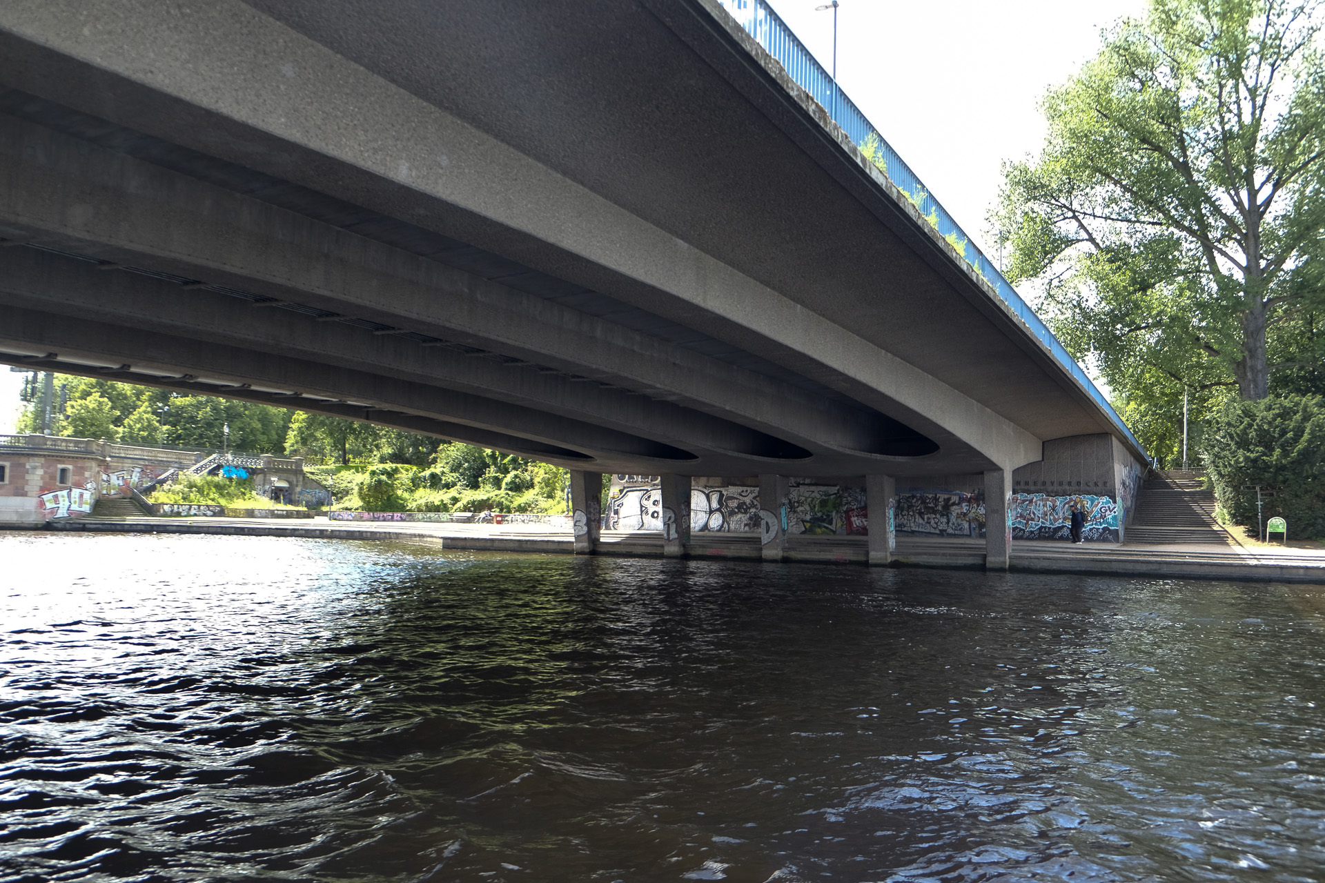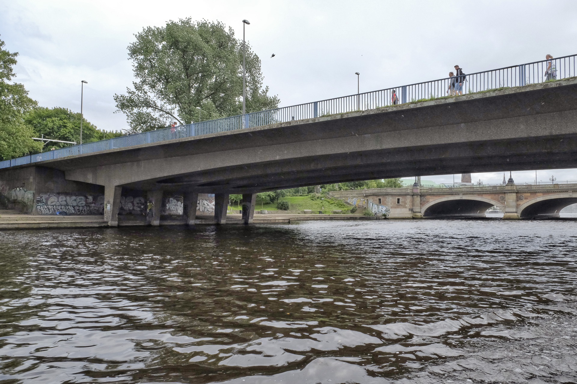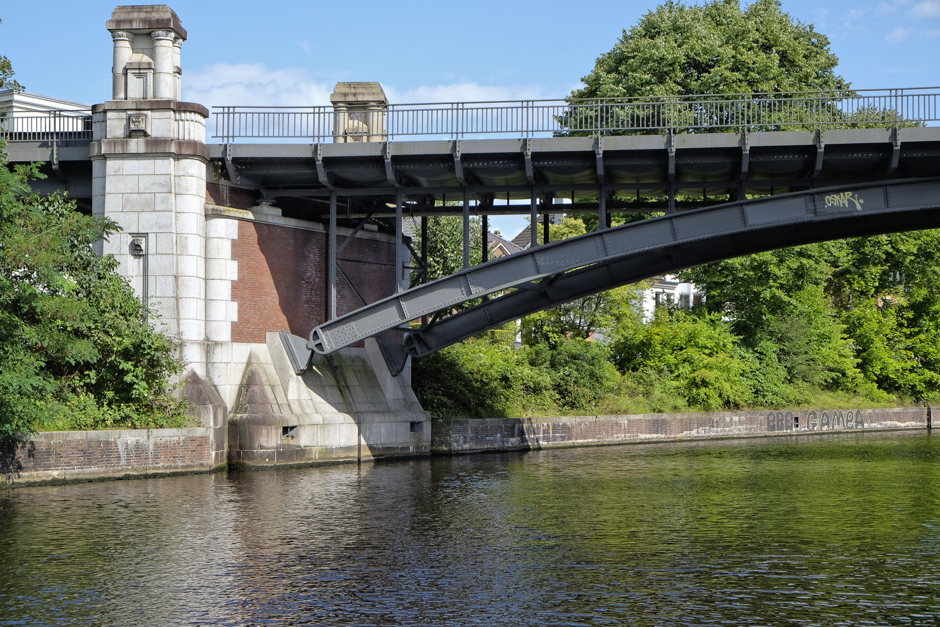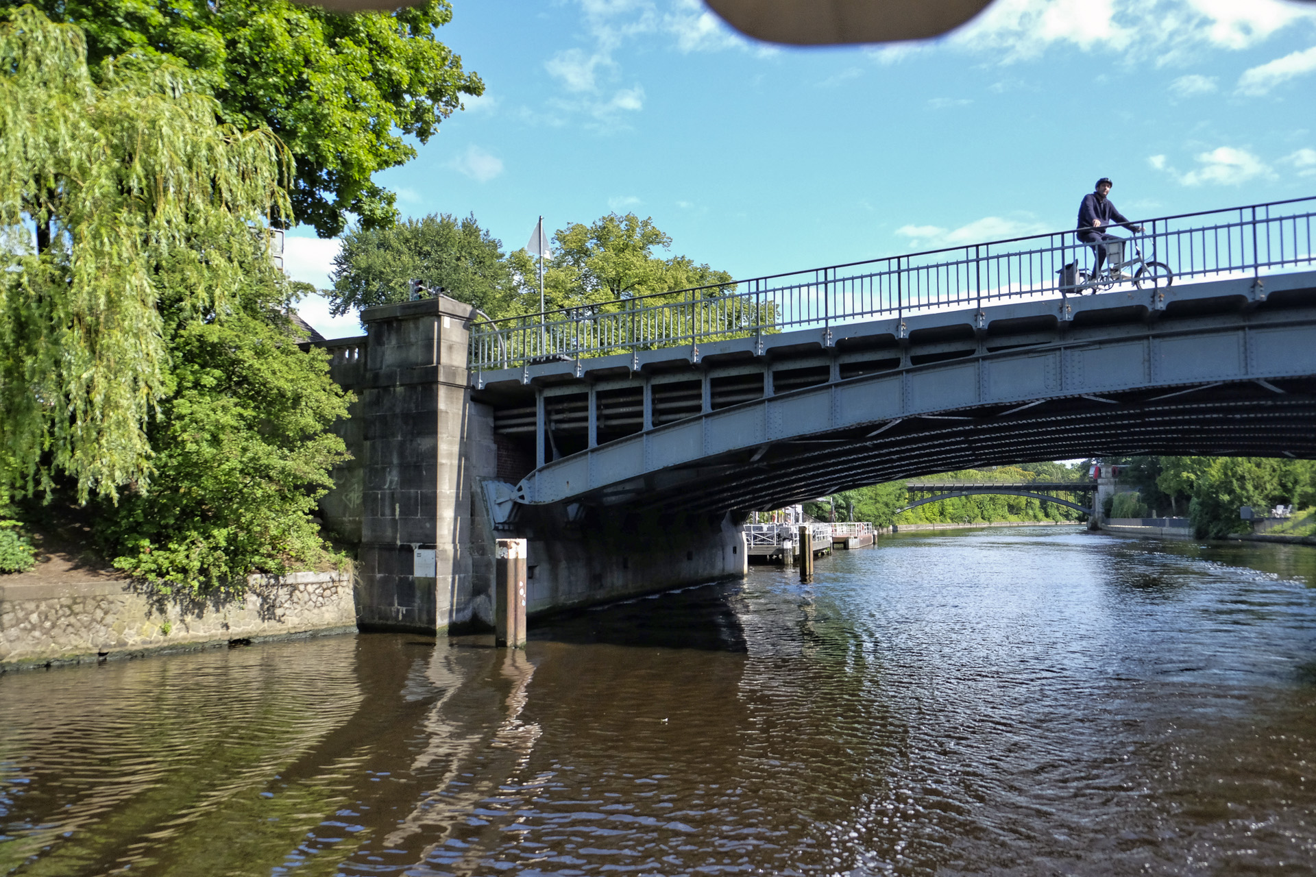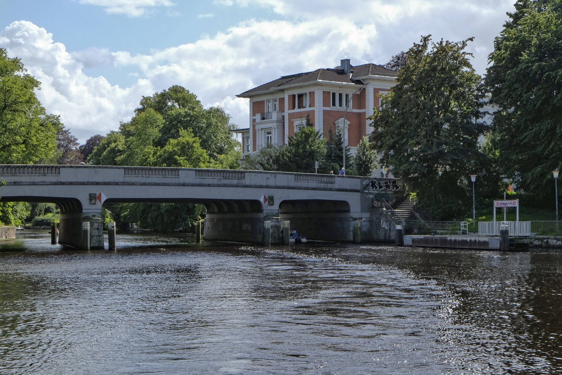 Ein Blick auf die Heilwigbrücke über den Isebekkanal.