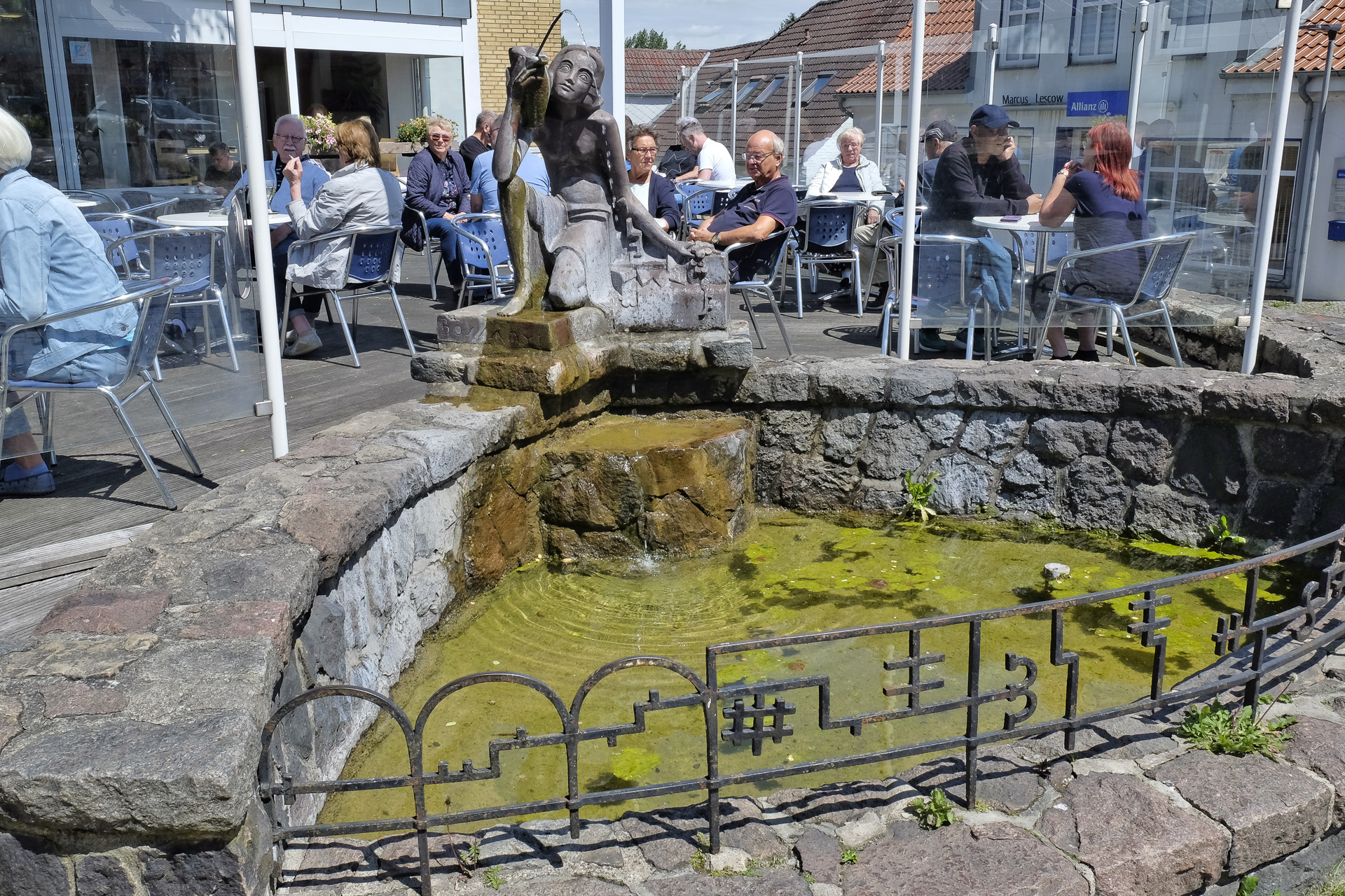 Der Brunnen vor dem Eis Cafe Rialto mit einer Figur von