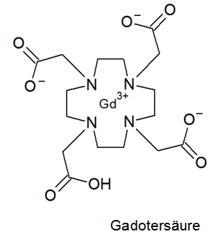 Diese Kontrastmittel enthalten das seltene Erden Element Gadolinium, es ist stark paramagnetisch und verbessert die Bildqualität. Da freie Gadolinium Ionen stark toxisch sind werden sie als Chelatkomplexe eingesetzt.