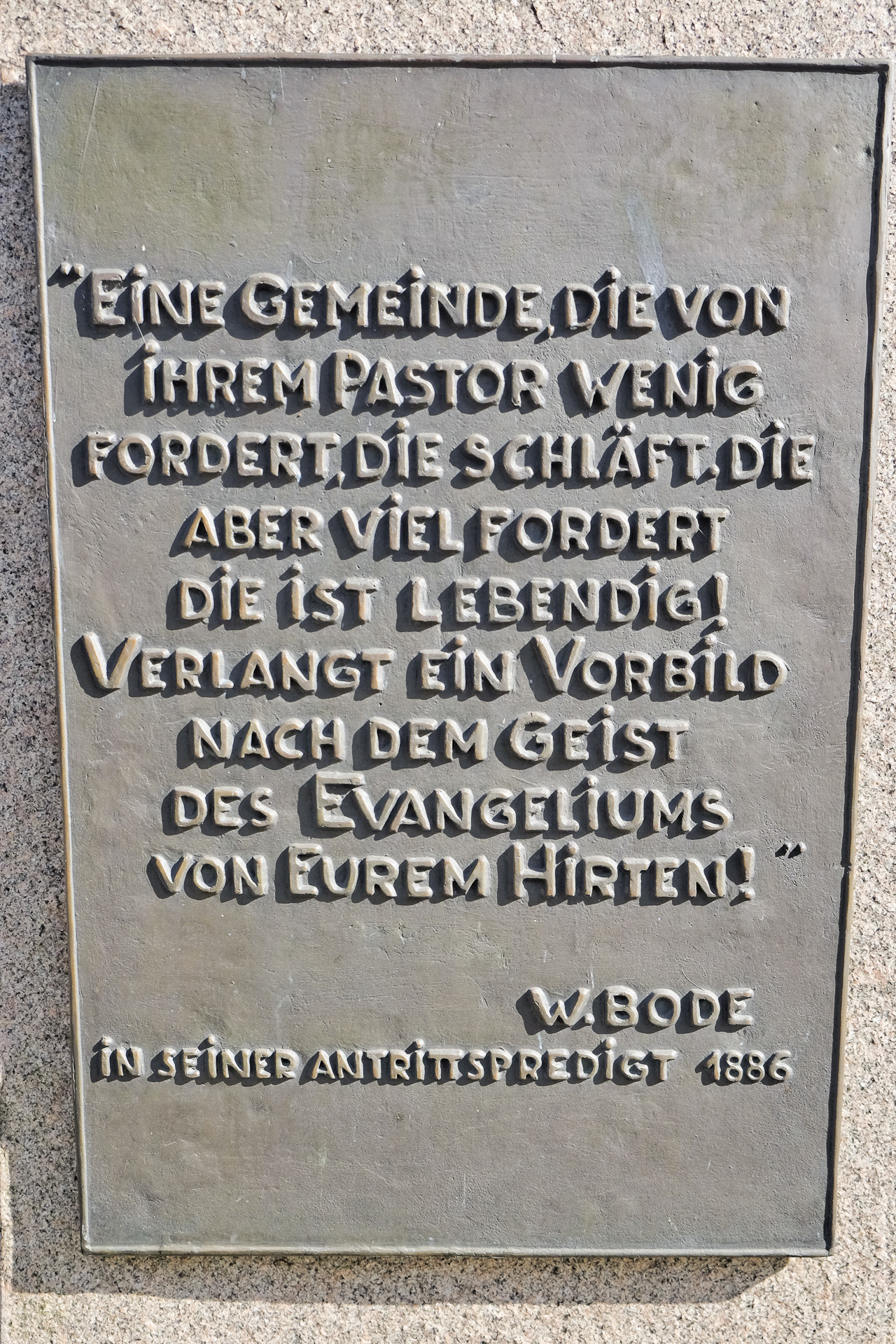 Neben der St. Stephanus Kirche steht das Denkmal für den Heidepastor Wilhelm Bode.
