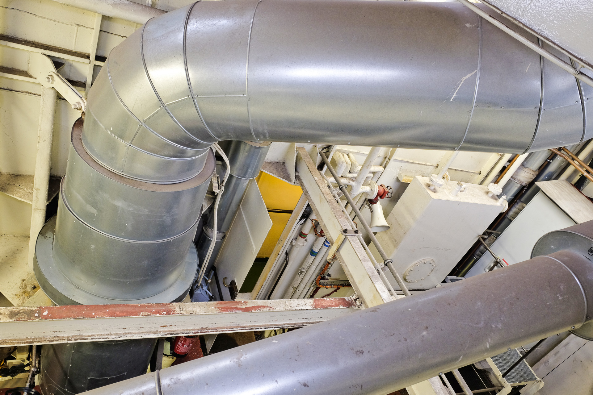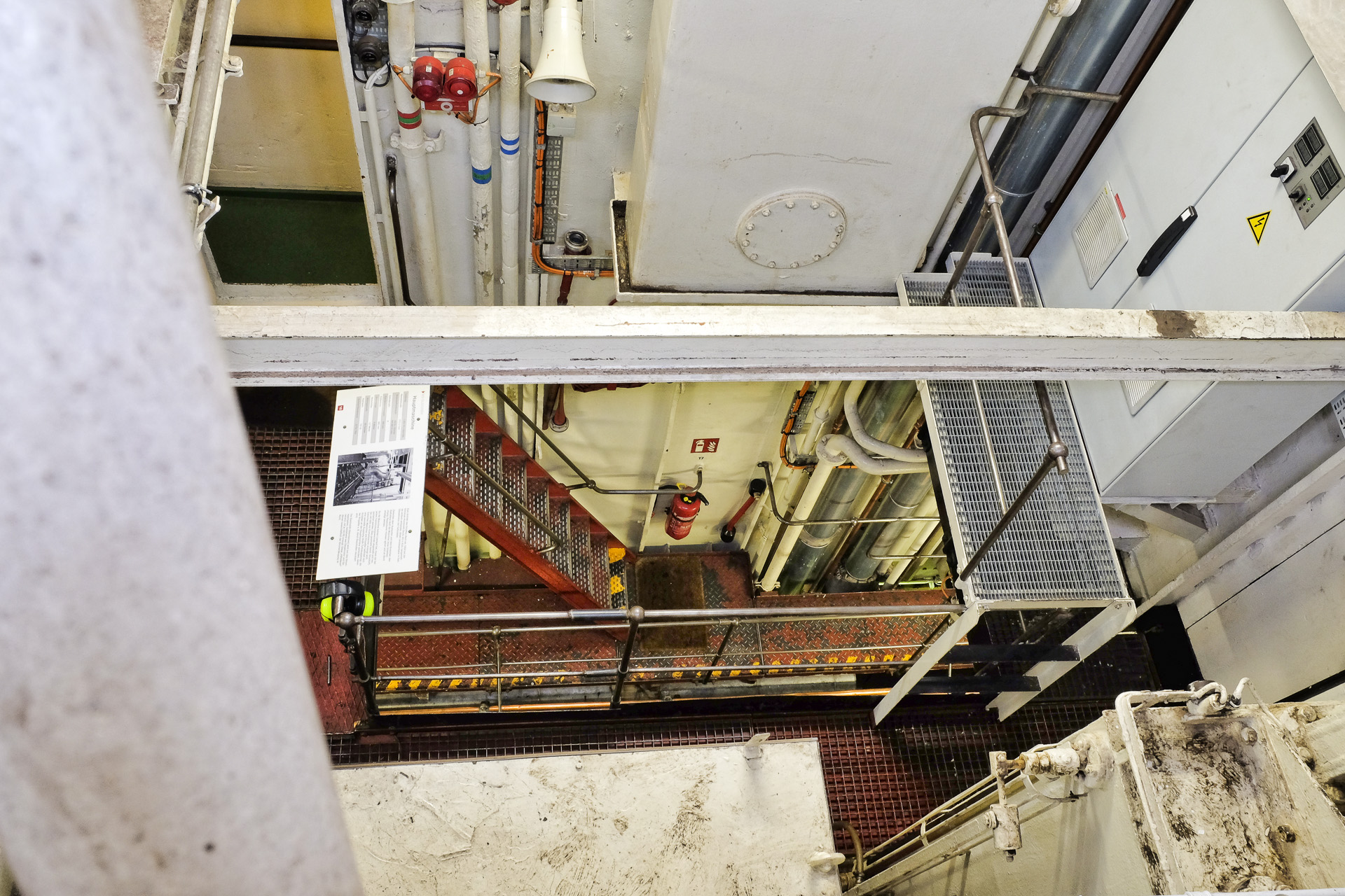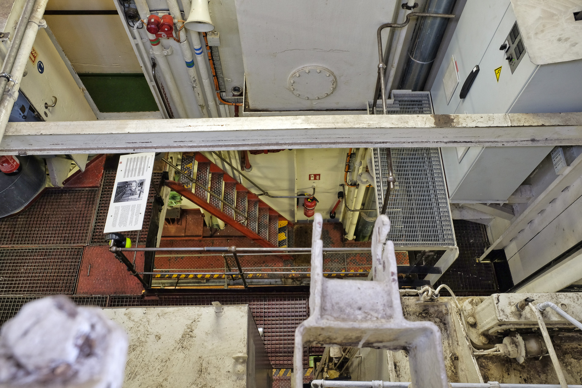 An Bord habe ich zuerst einen Blick durch die offenen Luken auf den Maschinenraum geworfen.