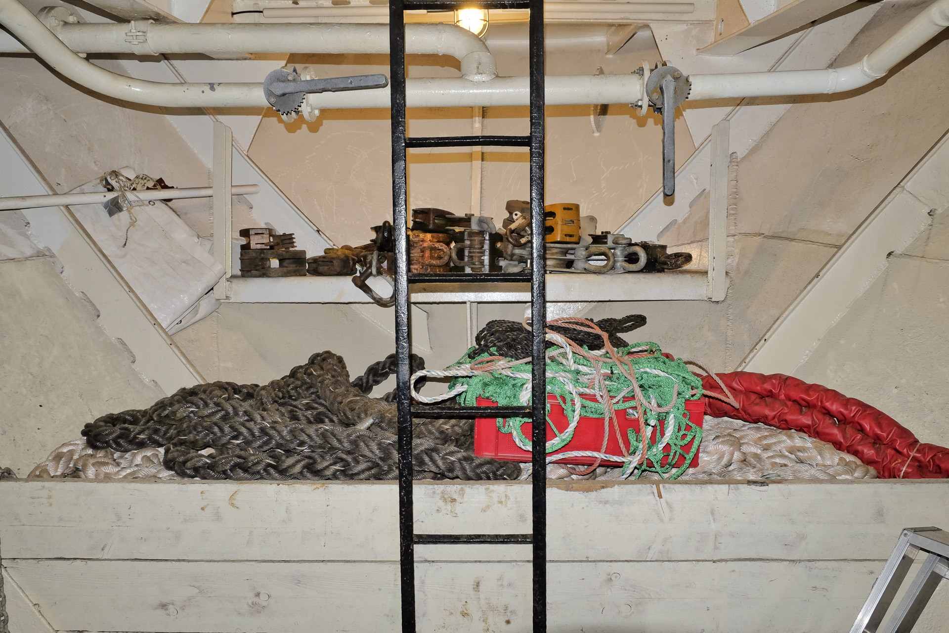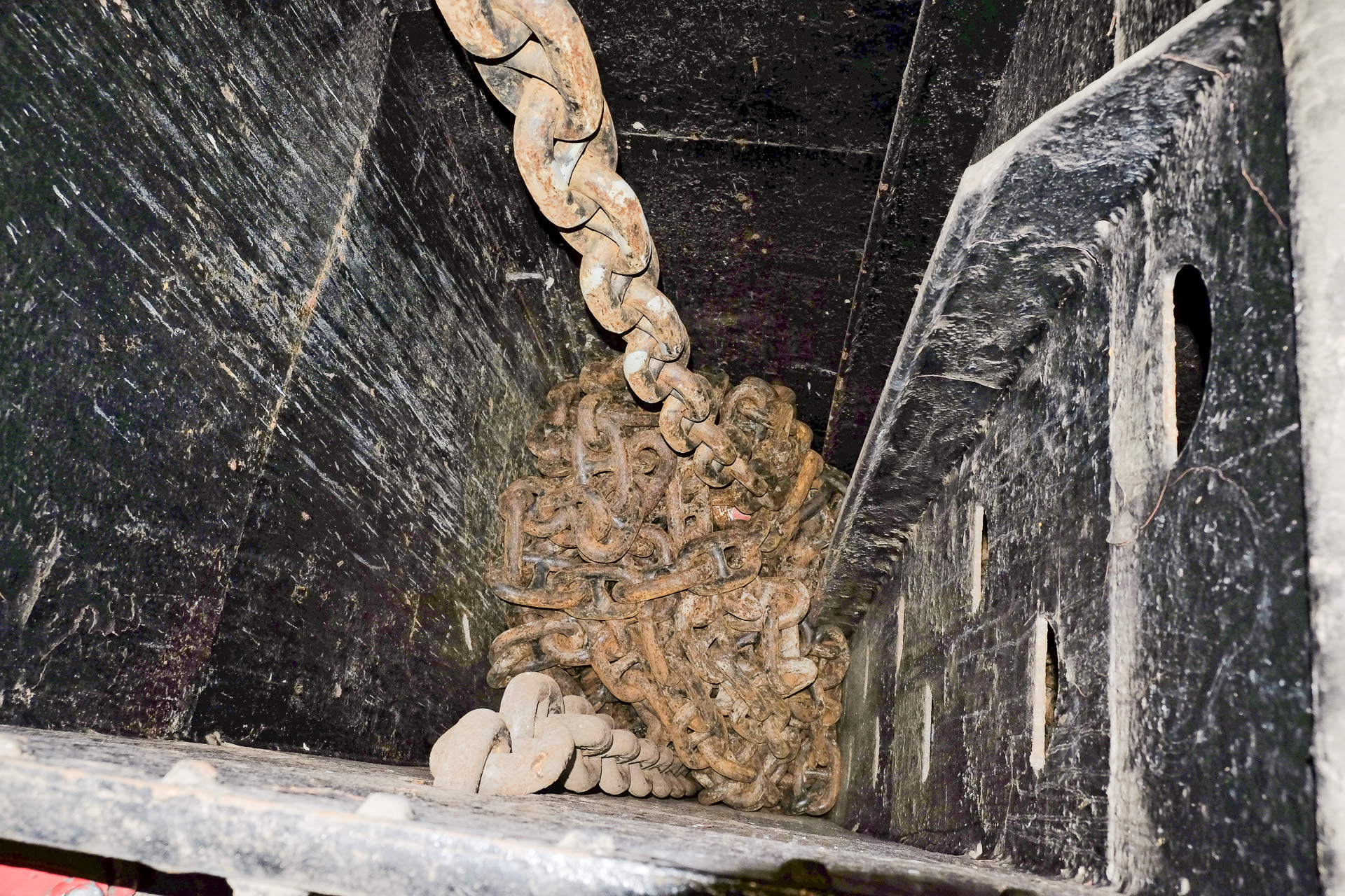 Das Kabelgatt im Vorschiff beherbergt auch die Ankerkästen.