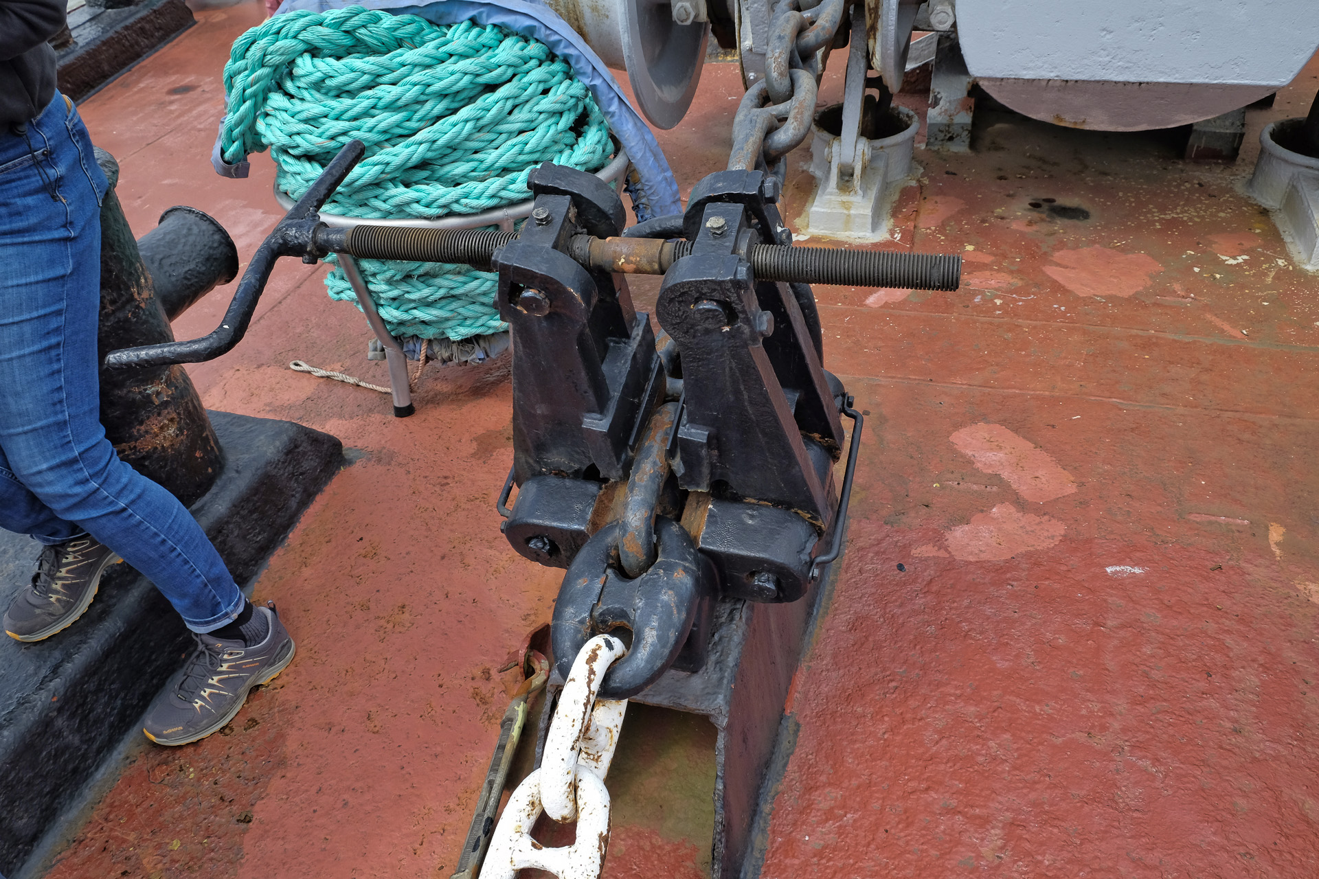 Die Sicherung (Klemmung) der Ankerkette.