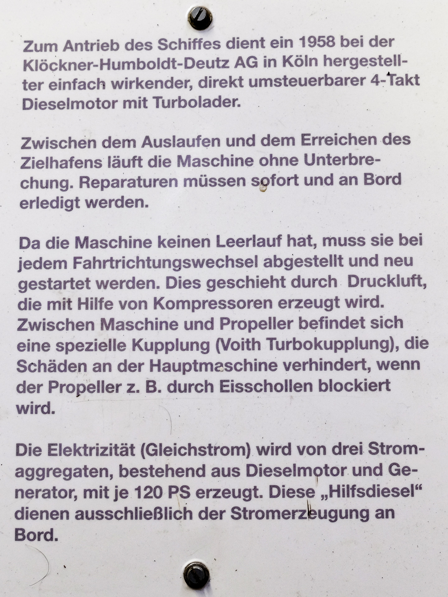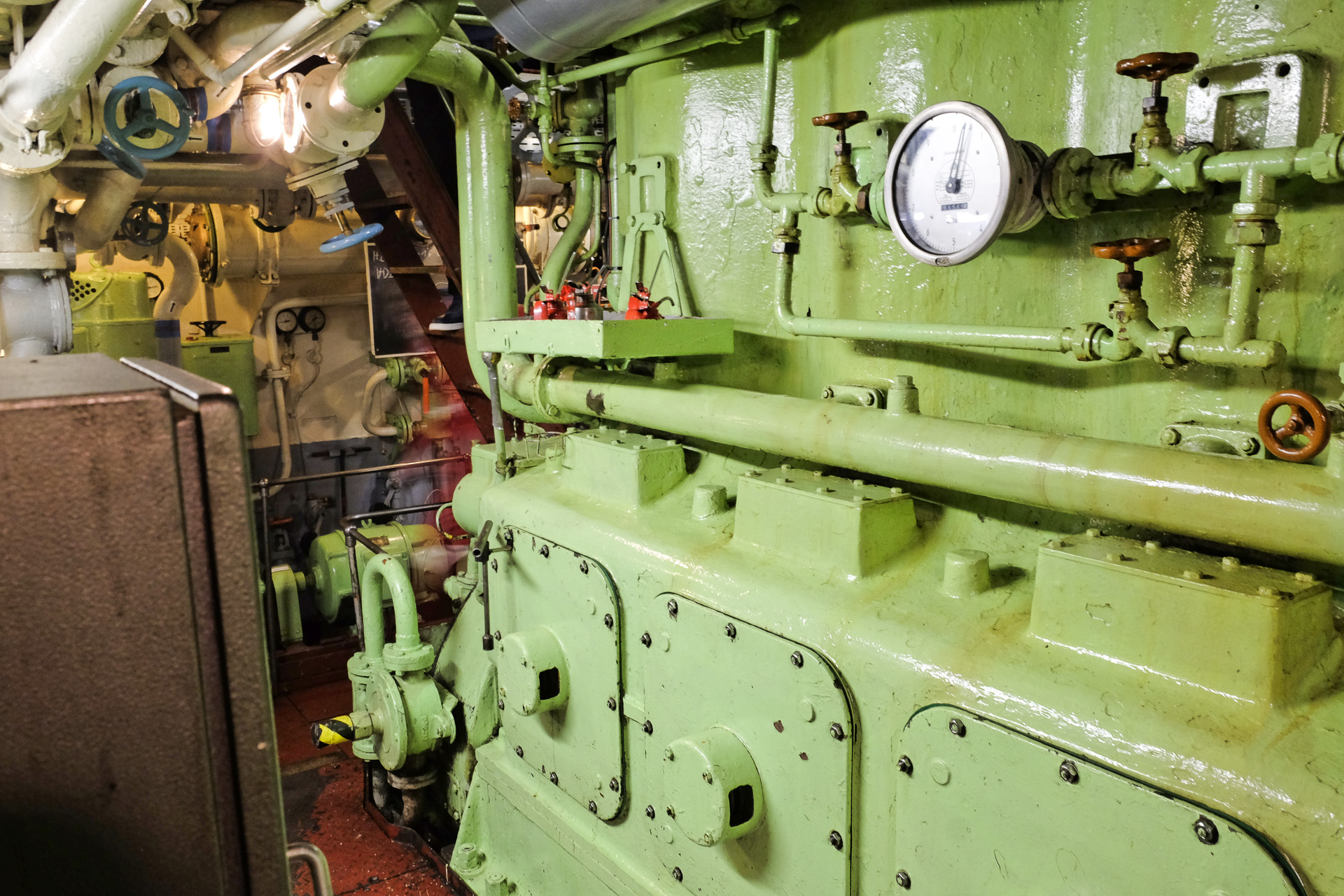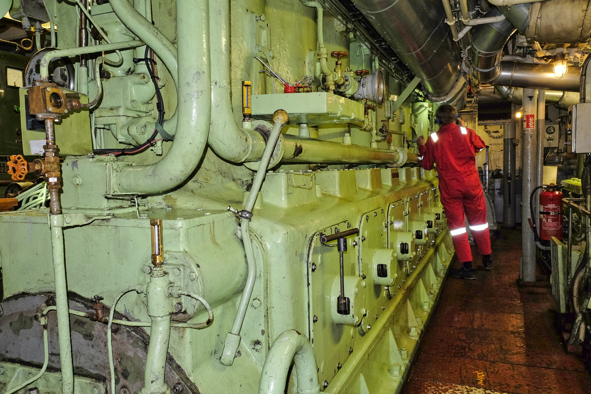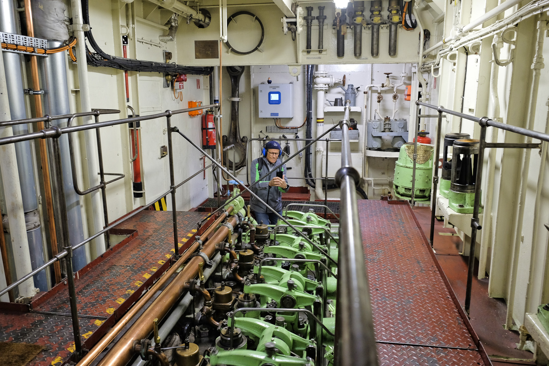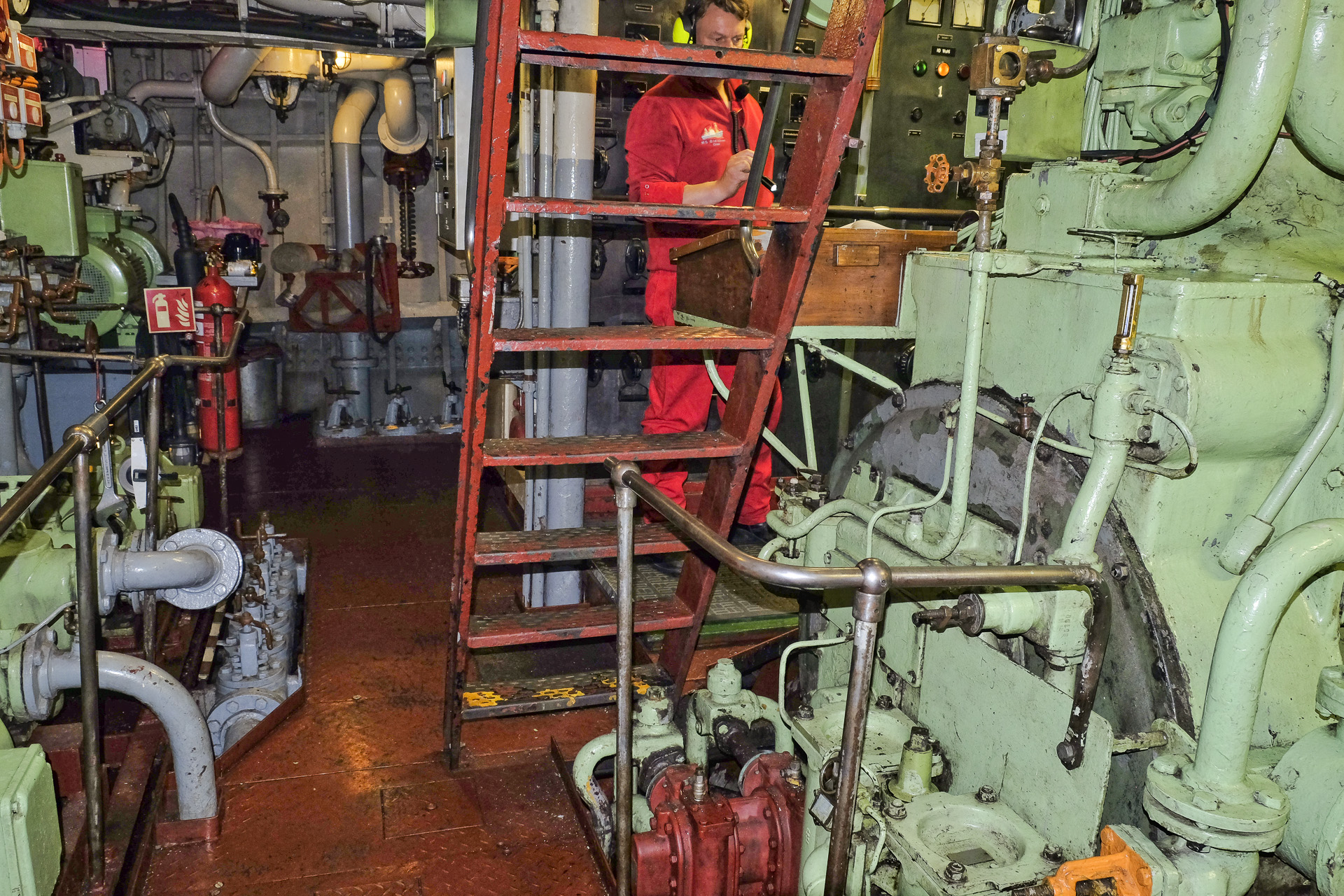 Im Rahmen einer Führung konnte man auch den Maschinenraum besichtigen. Aufgrund der Lautstärke (Gehörschutz) war dabei keine Unterhaltung möglich.