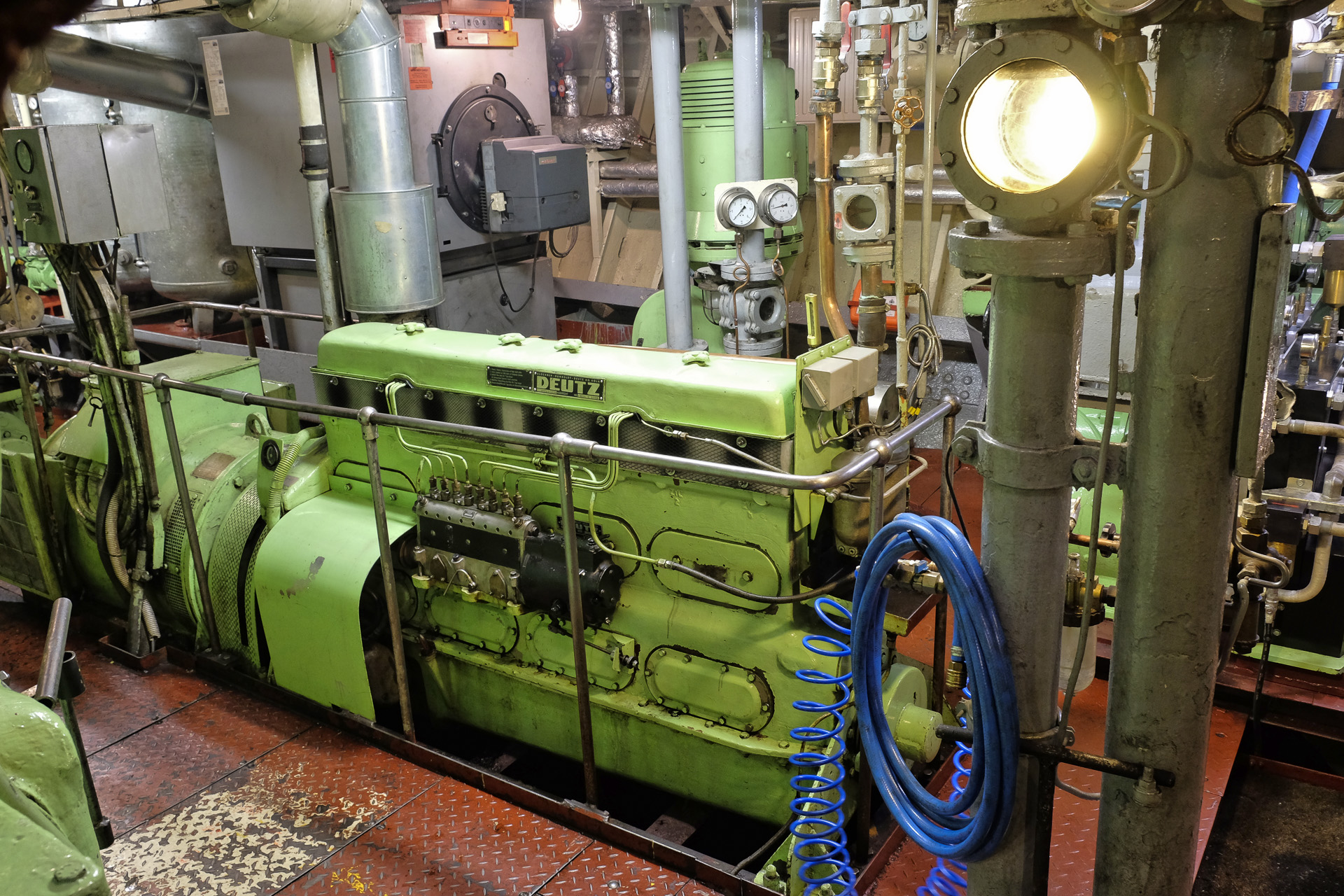 Neben der Hauptmaschine gibt es noch einige Hilfsaggregate, u.a. zur Stromerzeugung.