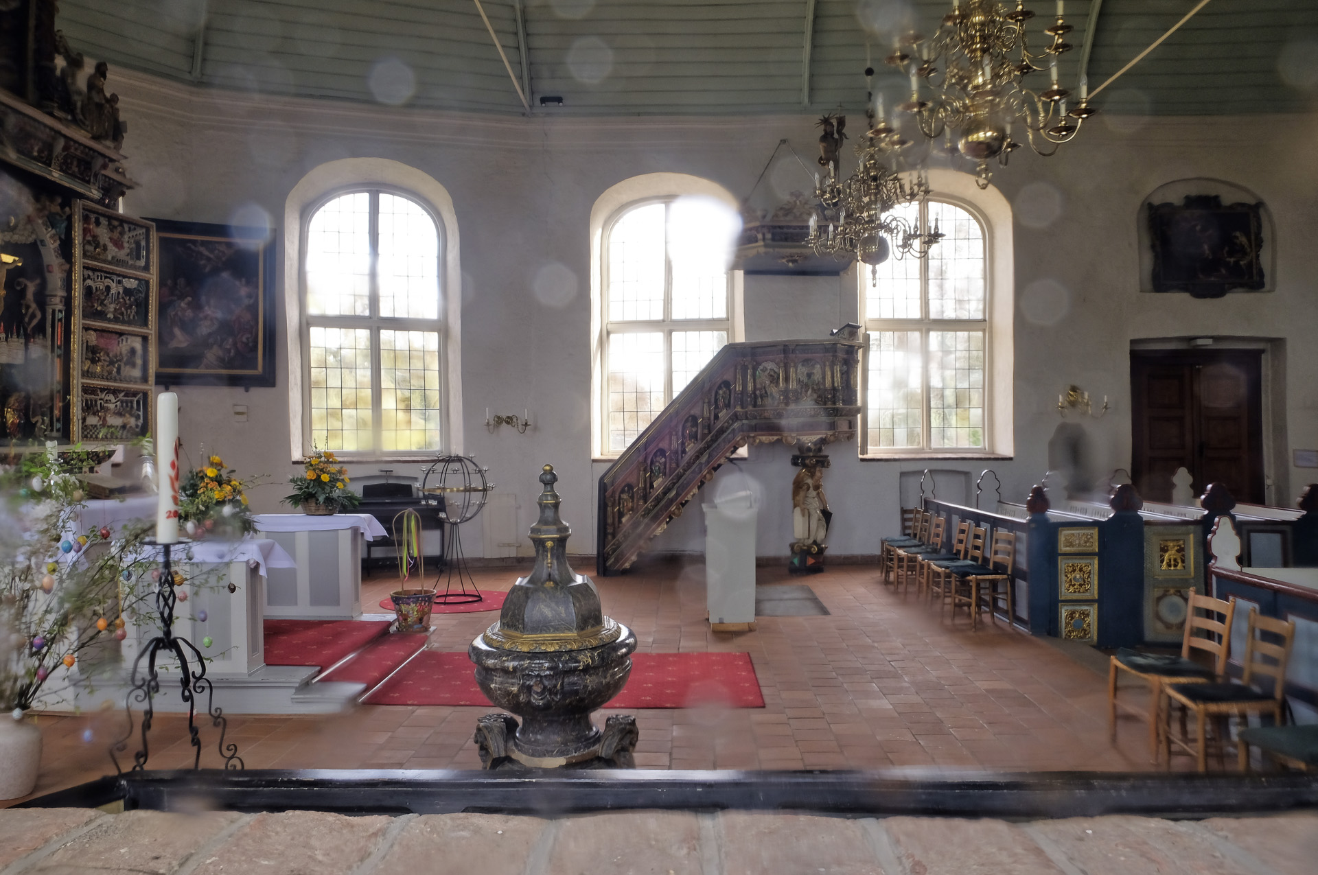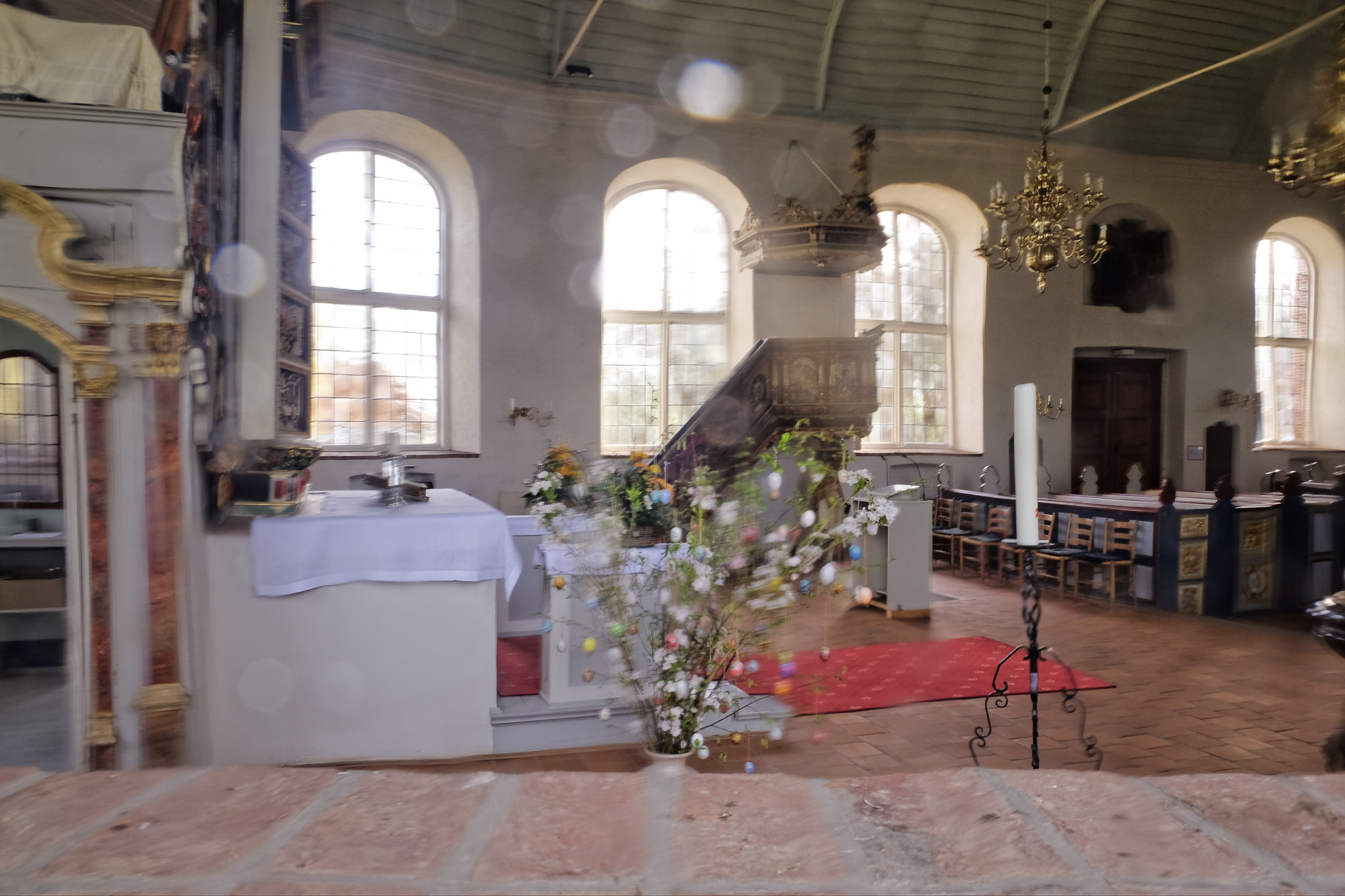 Leider war die Kirche geschlossen und ich konnte nur einen Blick durchs Fenster werfen. Die Struktur des Glases ließ leider keine guten Bilder zu.
