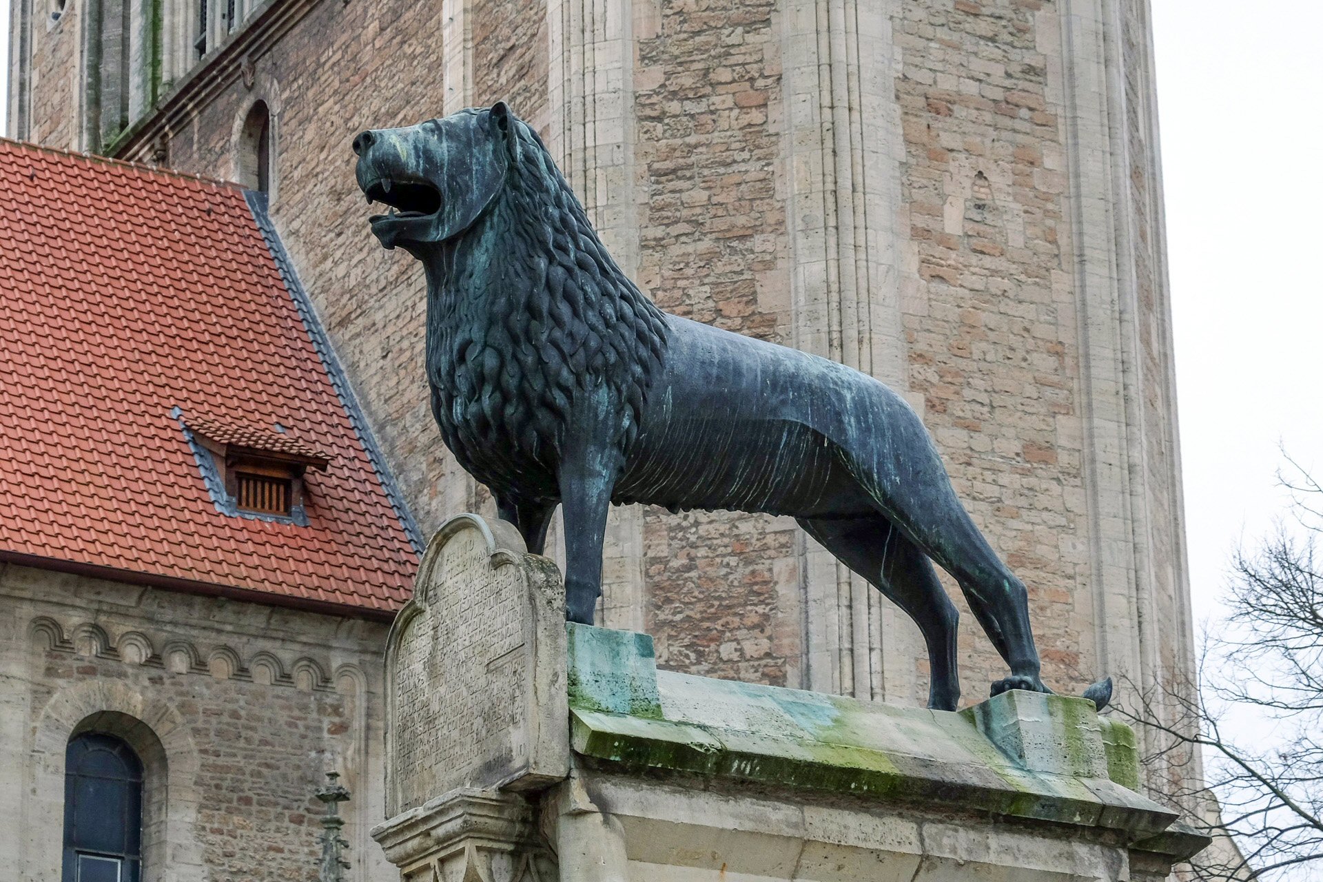 Der Braunschweiger Löwe, links die