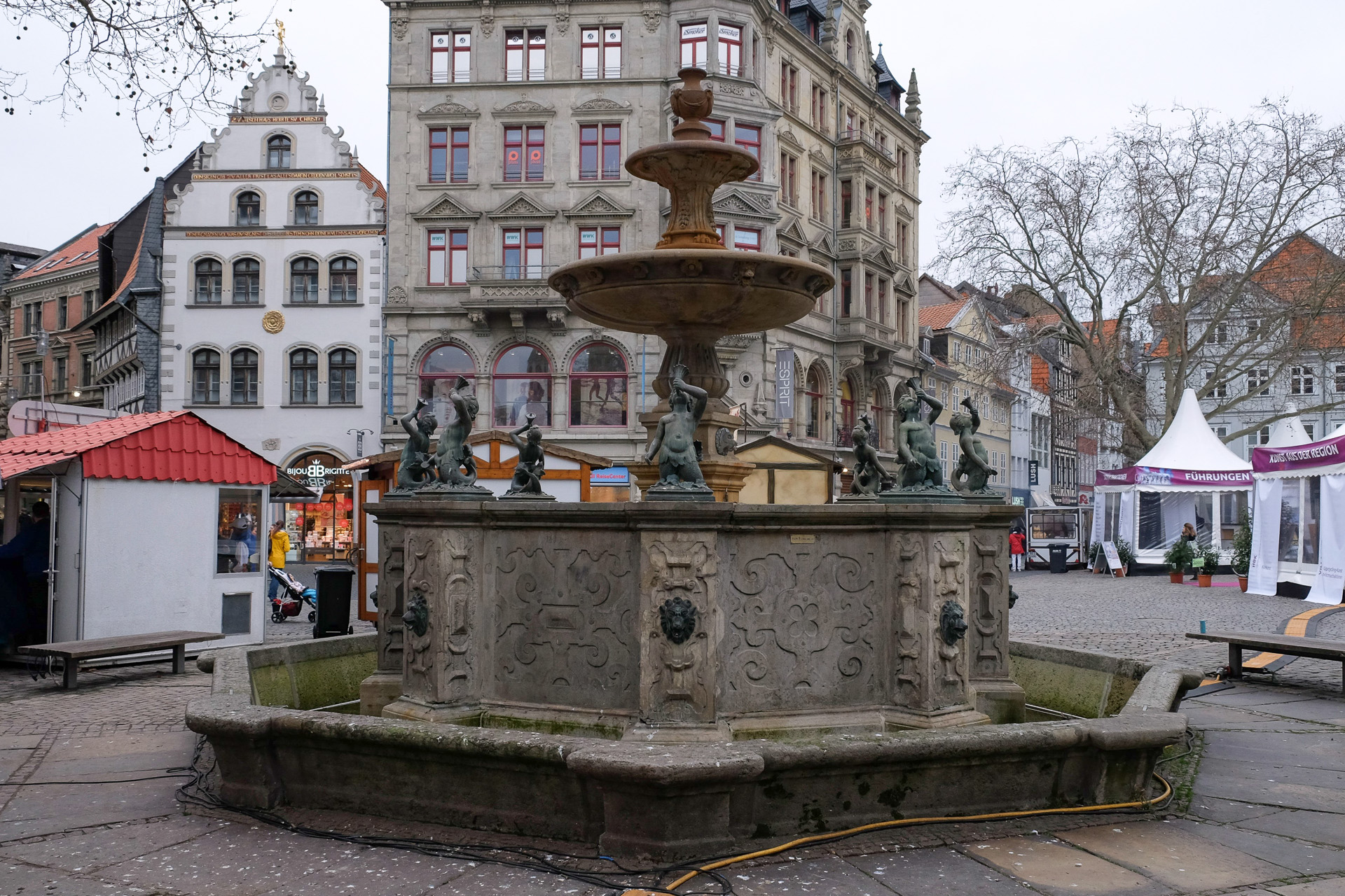 Der Hagenmarkt mit dem Heinrichsbrunnen und der St. Katharinen Kirche.