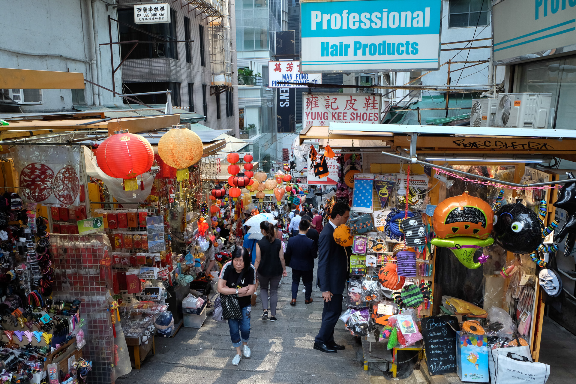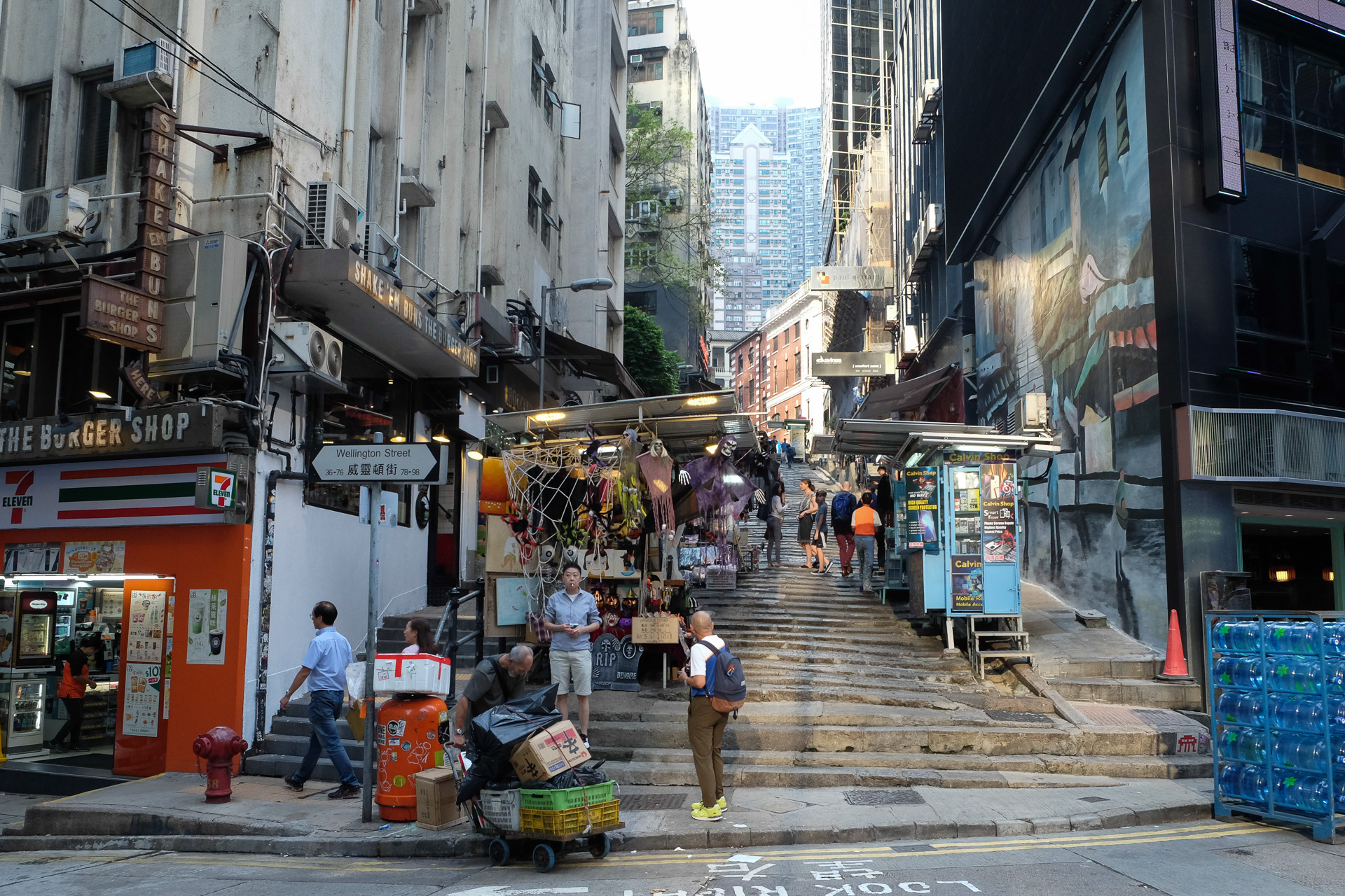 Von dort bin ich weiter zur Pottinger Street gelaufen die auf ihren Treppen viele Händler beherbergt.