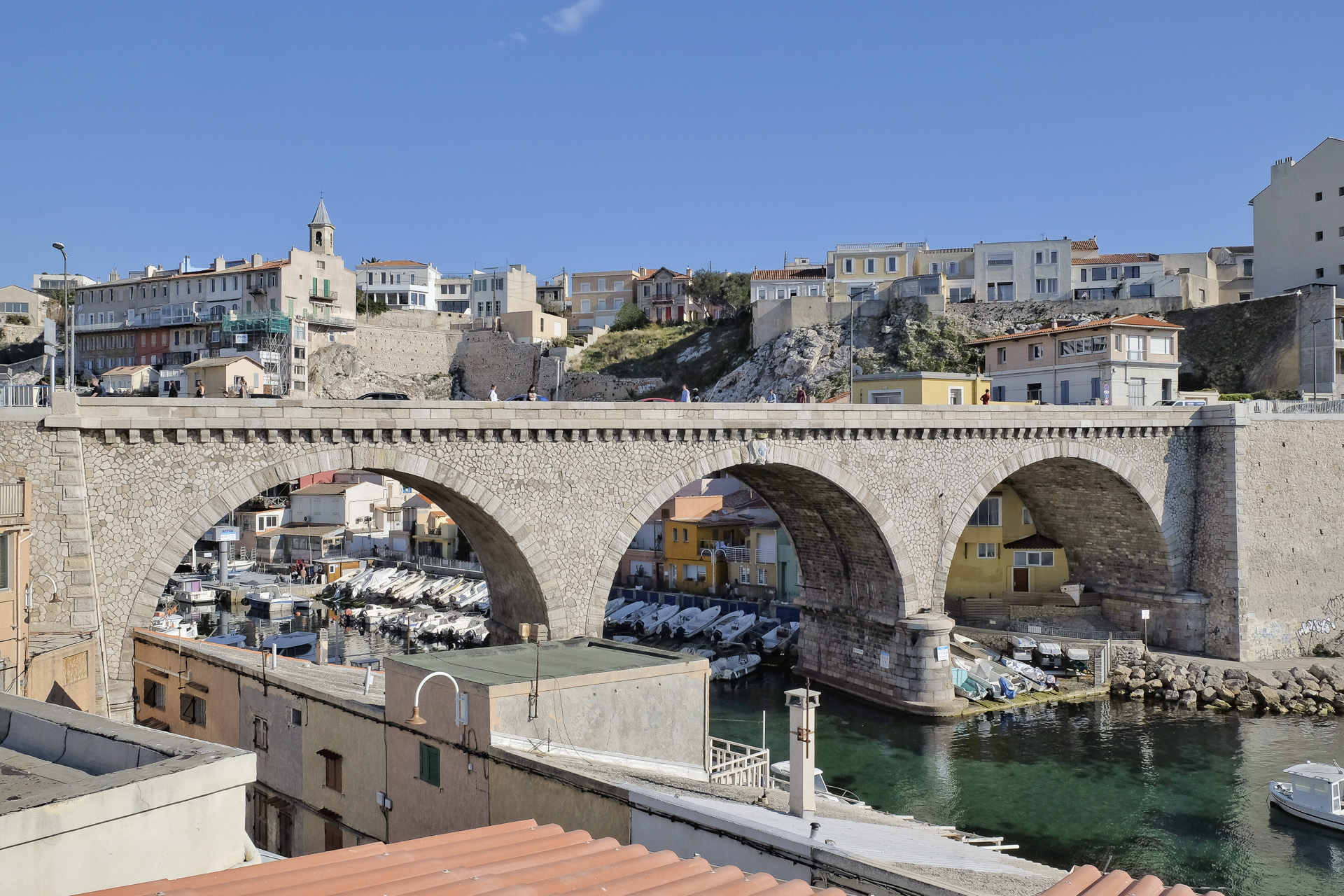Ein Blick vom Quai Marcel Pagnol auf die Tunnel am Bassin du Carénage.