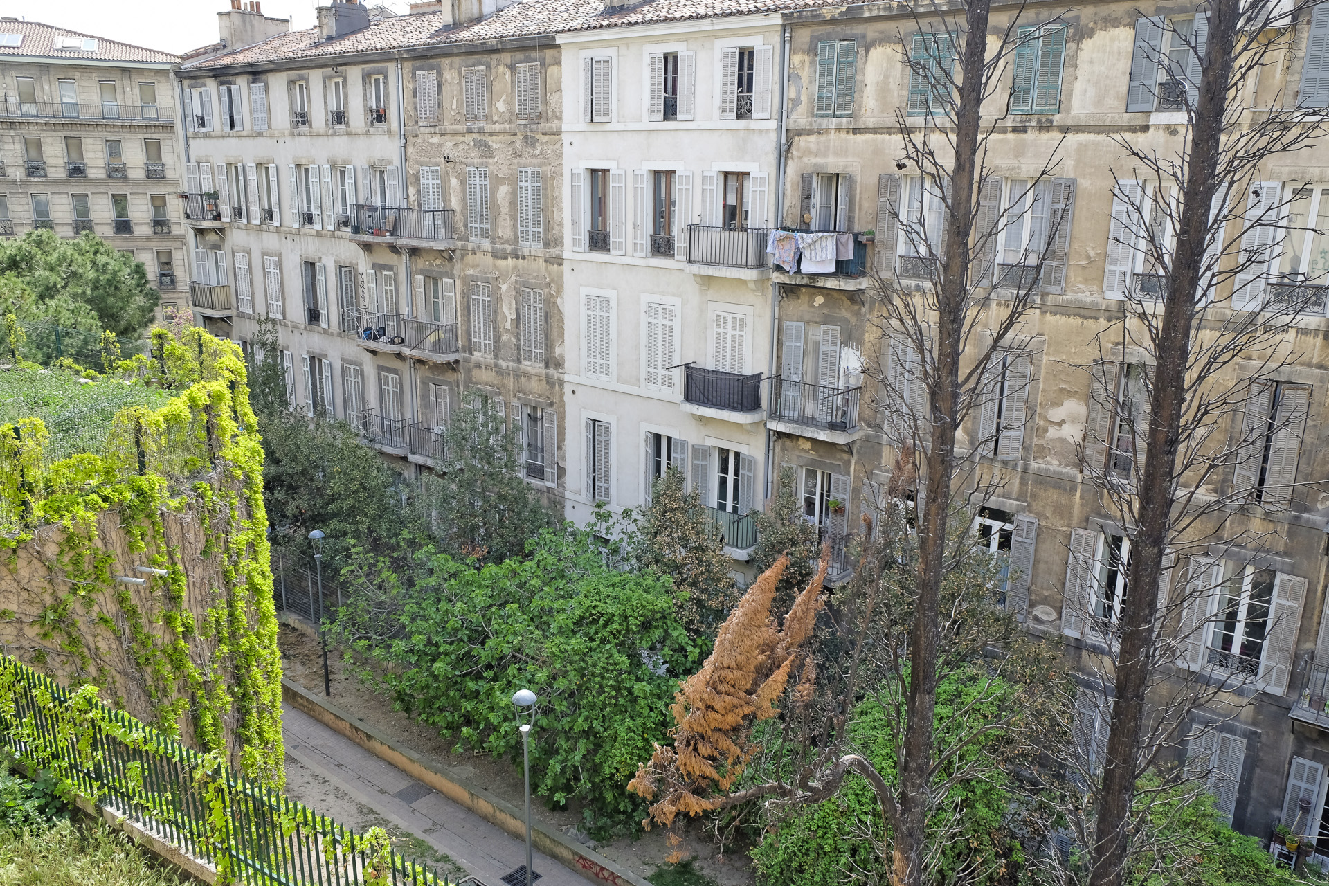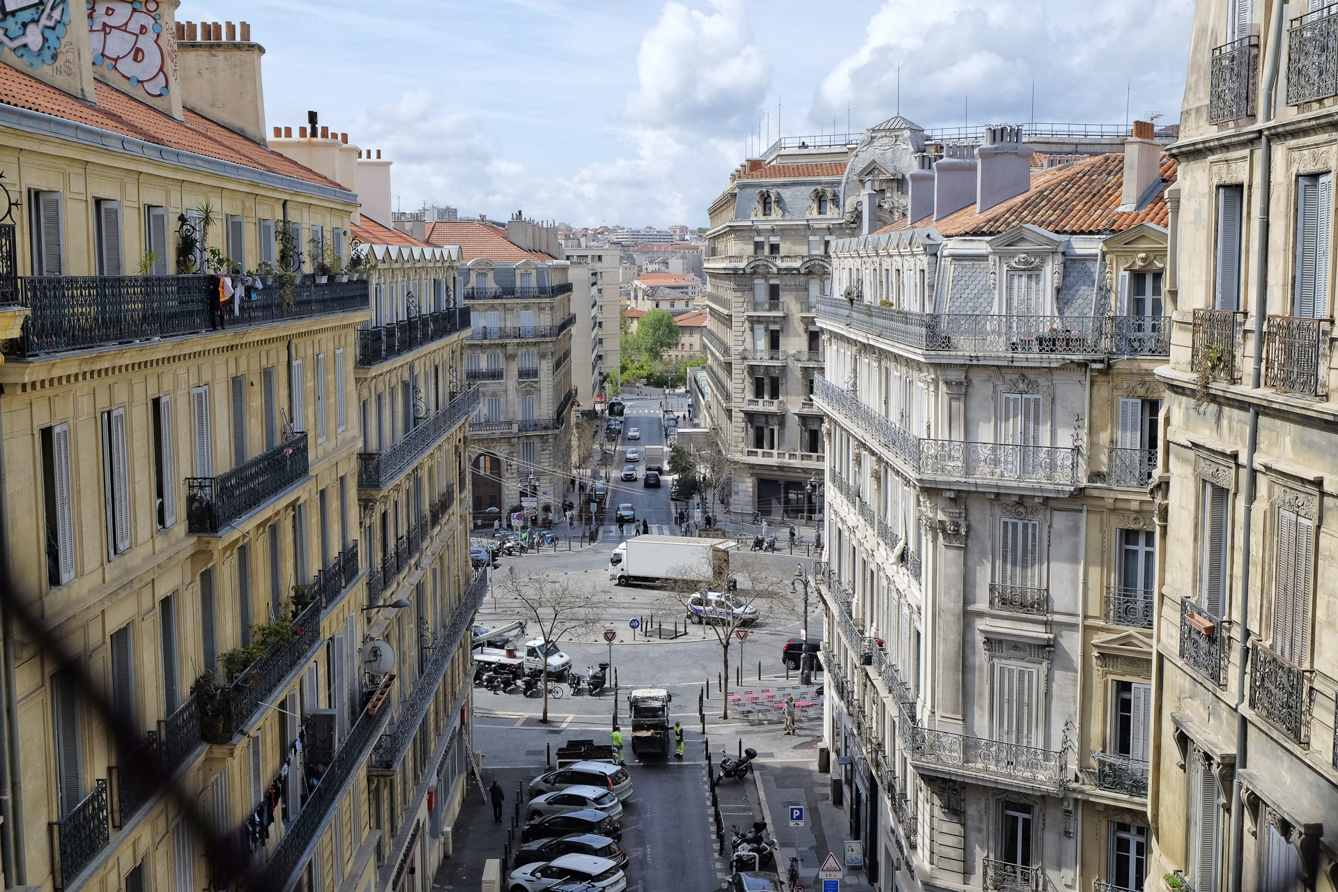 Ein Blick zurück auf die Rue Jean Trinquet.
