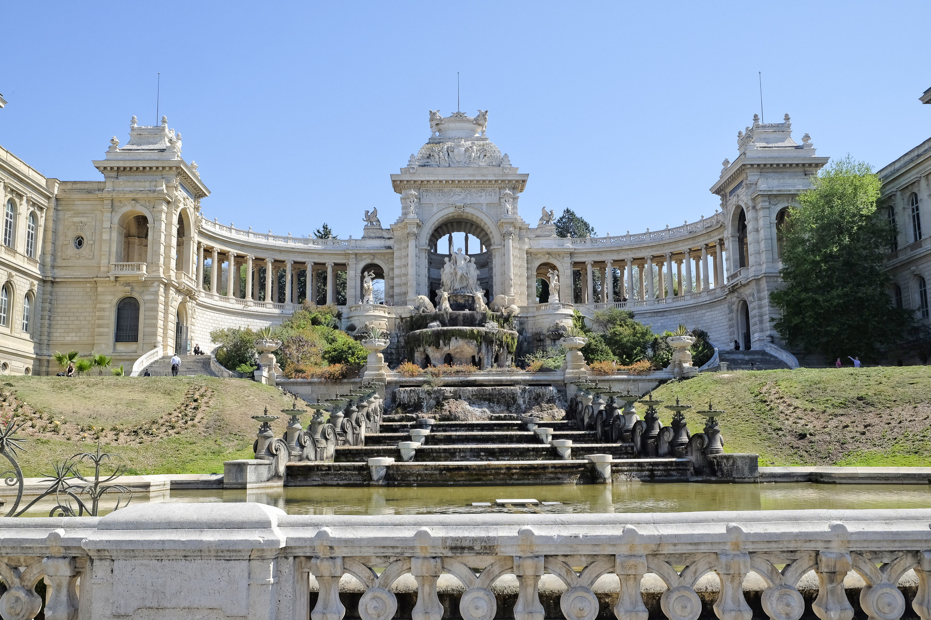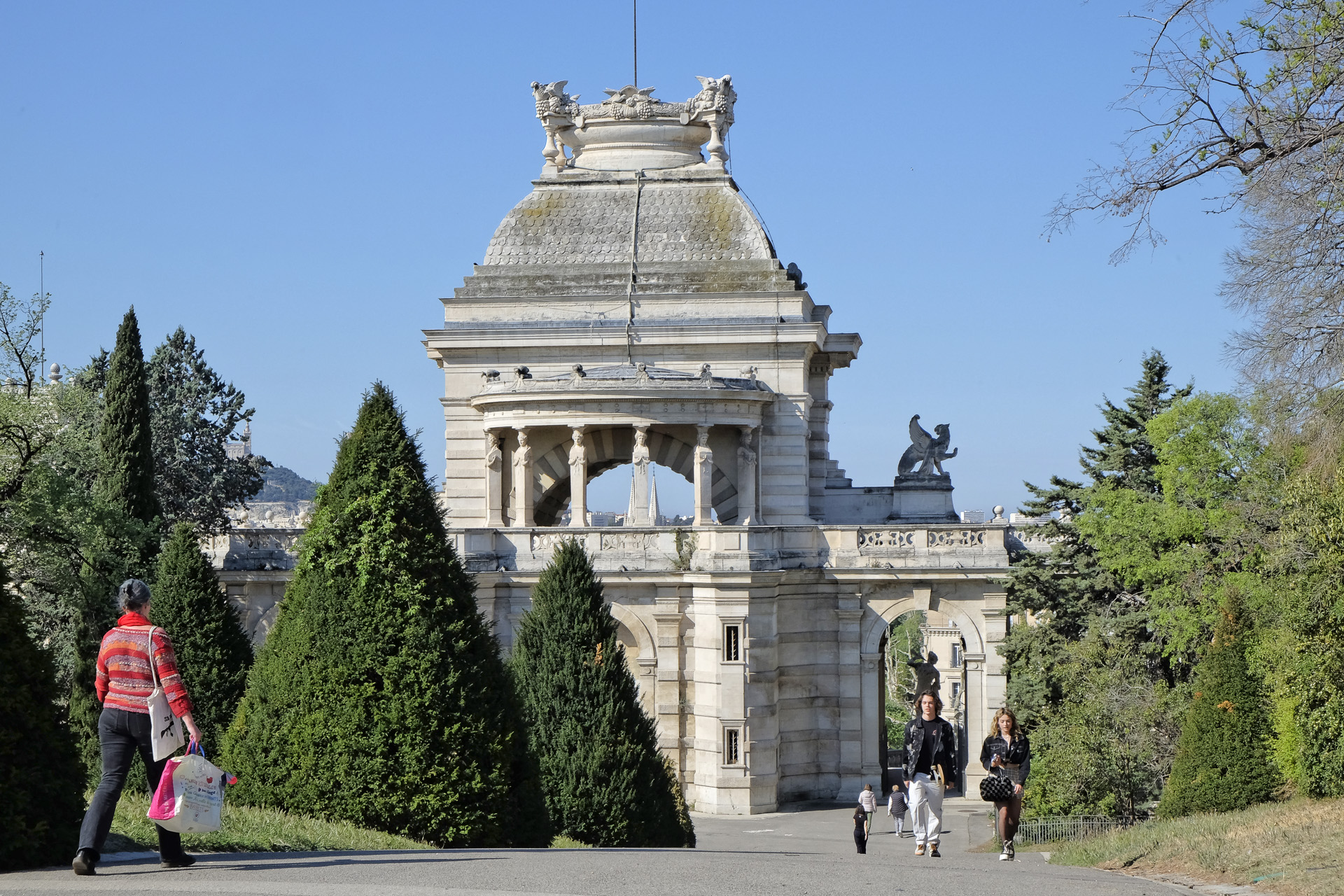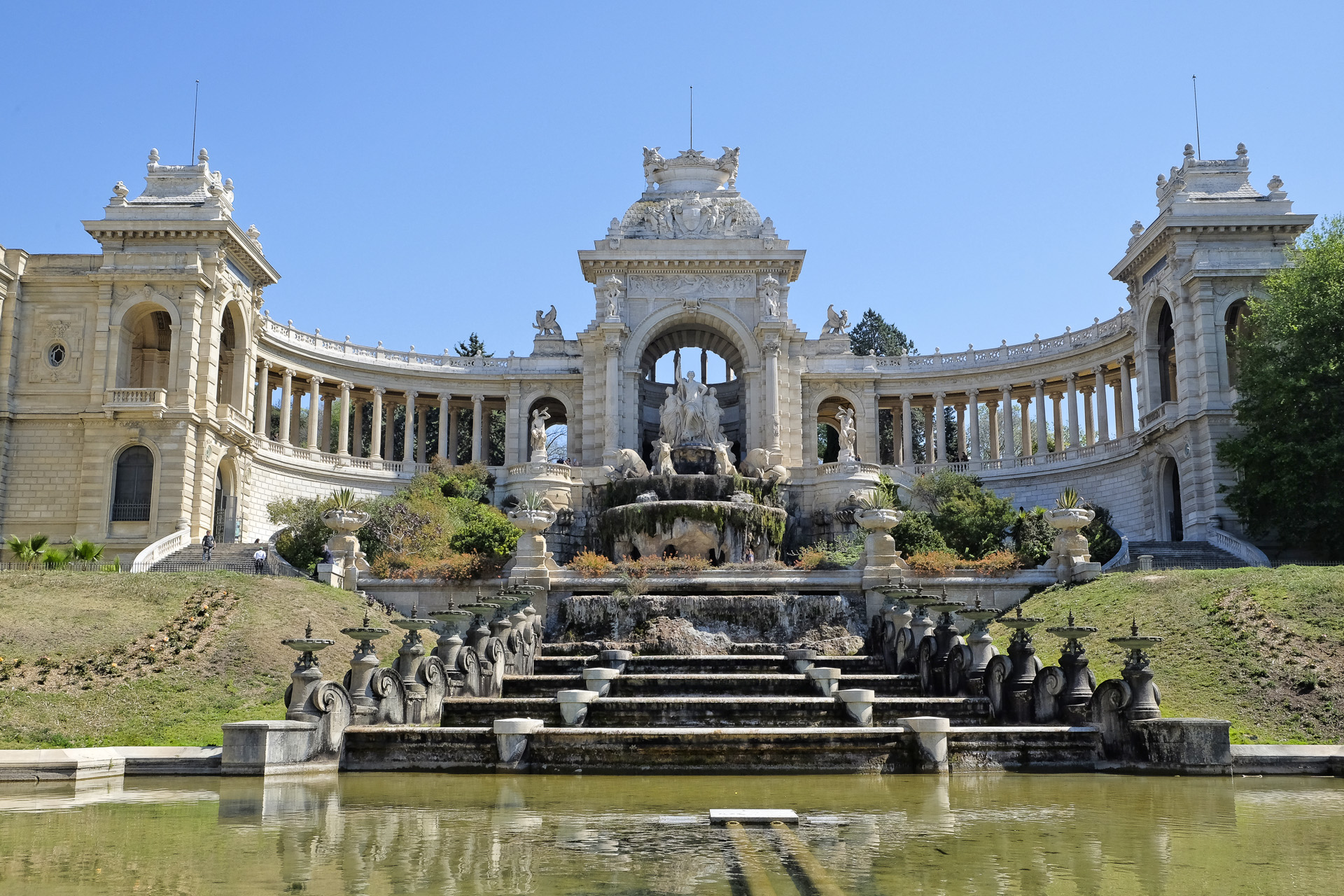 Das Palais Longchamp vom Parc Longchamp aus gesehen.