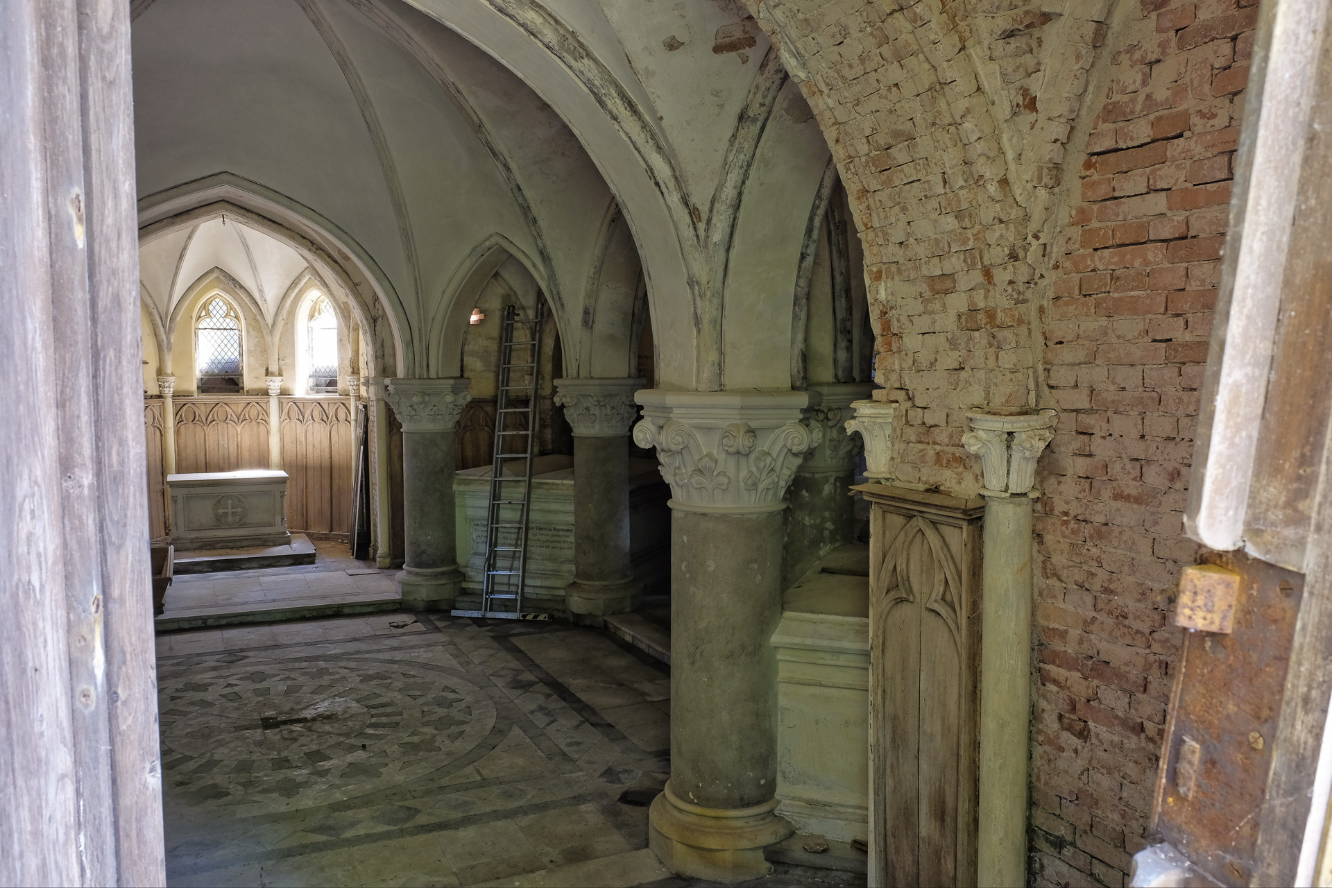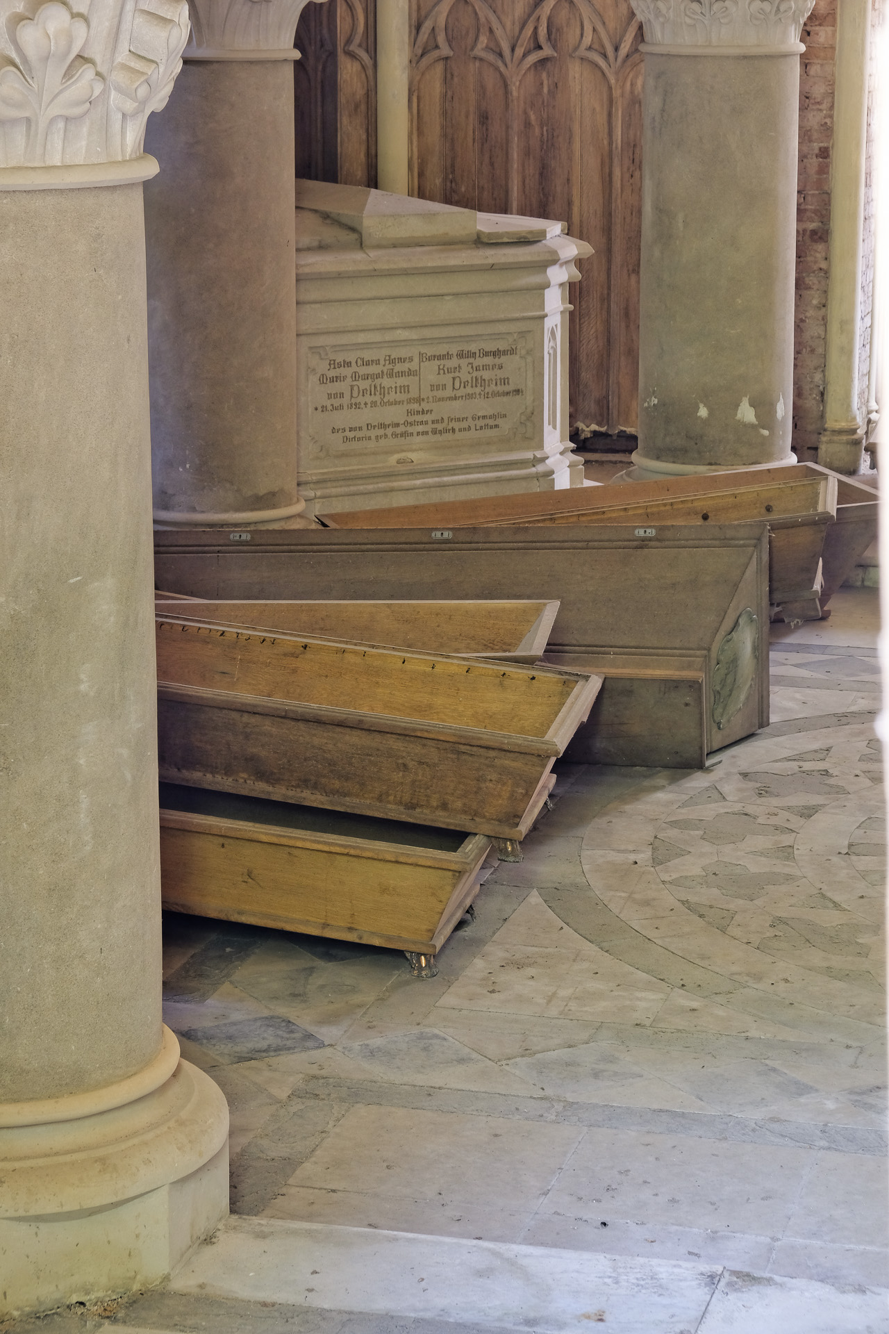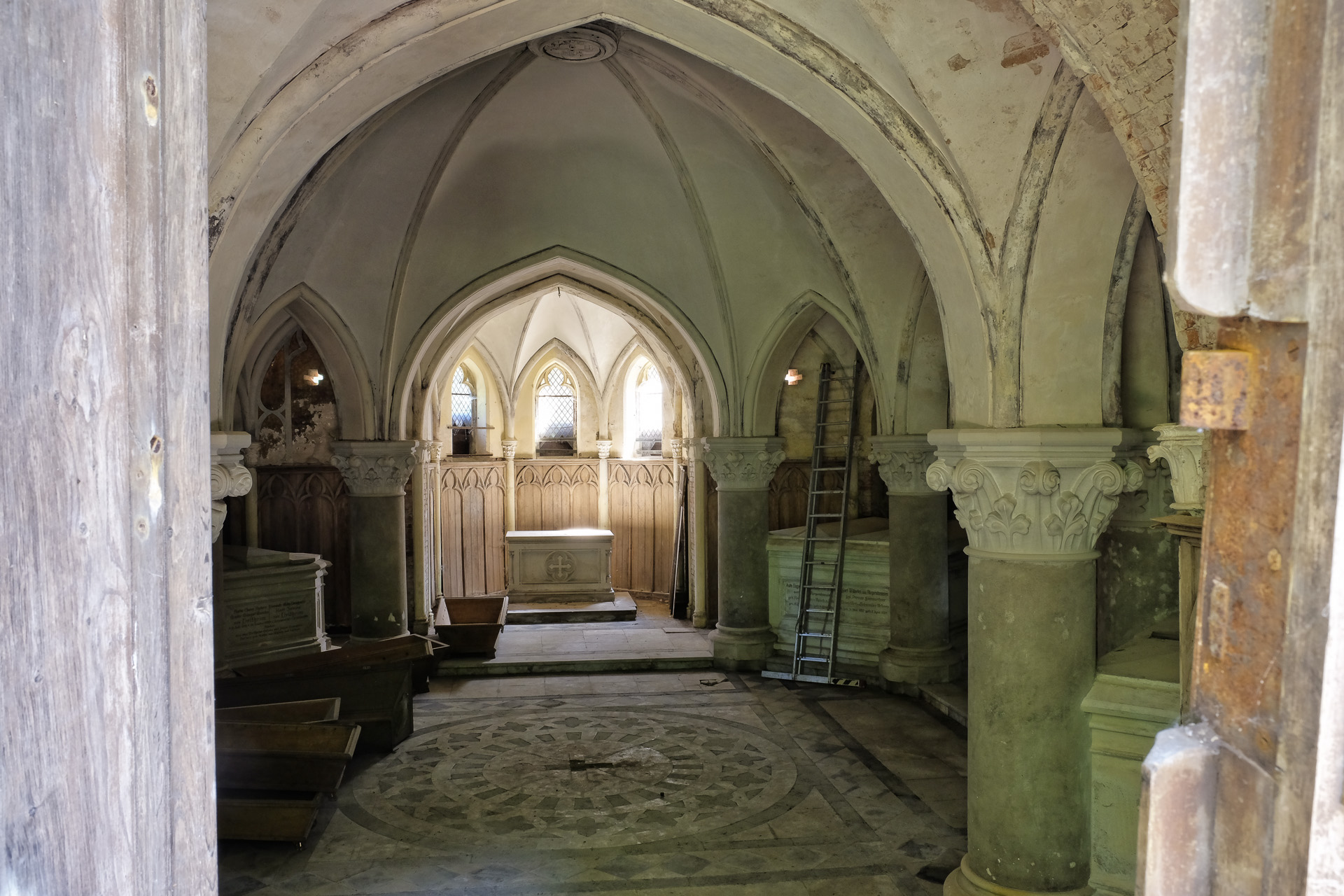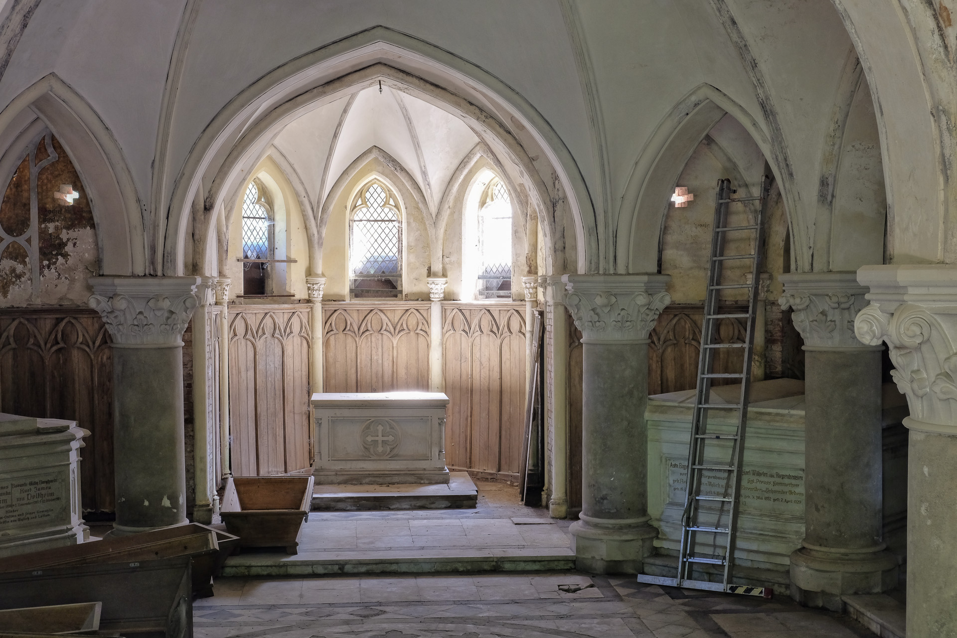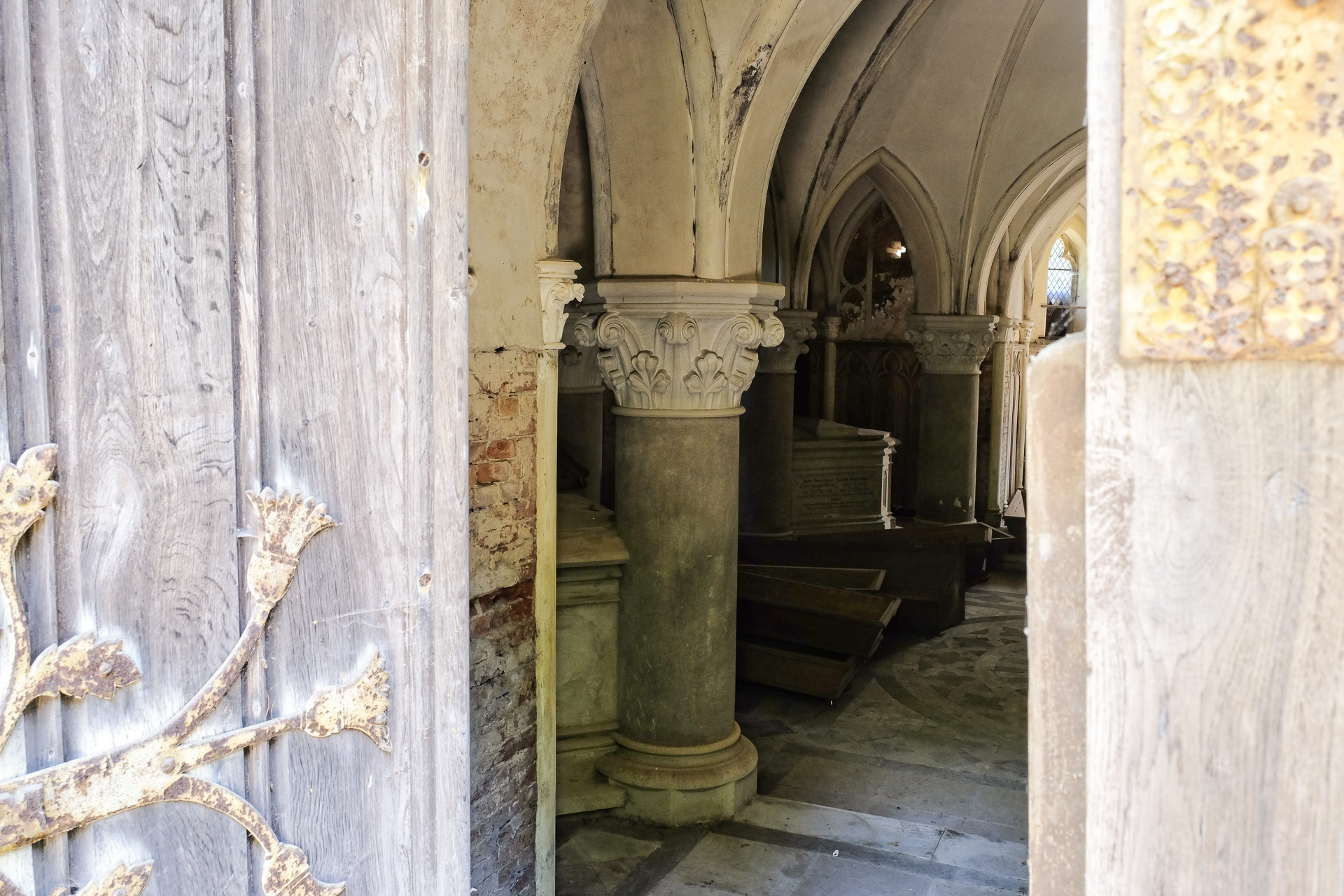 Die Tür ist verschlossen aber man kann einen Blick durch das Gitter ins Innere werfen.