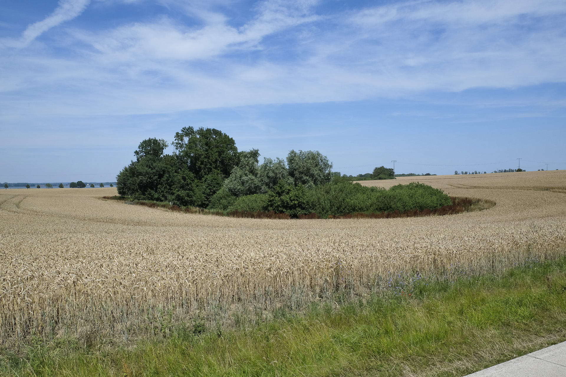 So sind wir zurück nach Losentitz gefahren und rechts Richtung Maltzien abgebogen. Die Straße endete irgendwann und es ging auf einem befestigten Feldweg weiter. Er war schmal das es regelmäßig Ausweichbuchten für den Gegenverkehr gab.