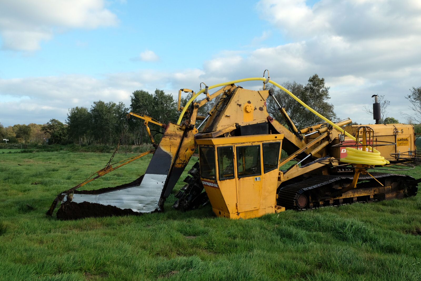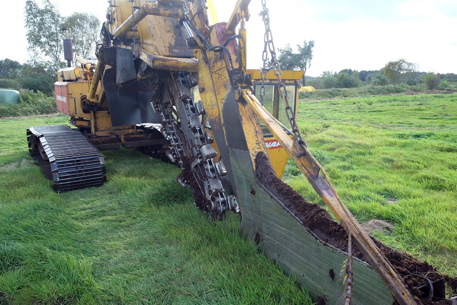 Eine Maschine zum Verlegen von Entwässerungsrohren.