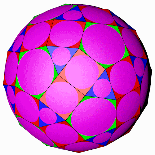 Das Doppelt verdrehte kleine Rhombenikosidodekaeder (meta) mit seiner Kantenkugel.