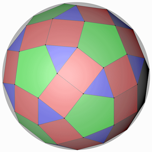 Name | Doppelt verdrehtes kleines Rhombenikosidodekaeder (meta) Metabigyrate rhombicosidodecahedron |