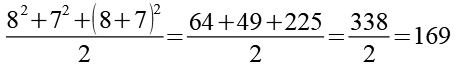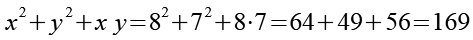 x und y ersetzen wir durch 8 und 7 und erhalten 169.