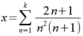 1,50000000000 1,91666666667 2,11111111111 2,22361111111 2,29694444444 2,34853174603 2,38679705215 2,41631094104 2,43976773117 2,45885864026 2,62508291009 2,64293556568 2,64473408185 2,64491406700 2,64493206685 2,64493386685 2,64493404882 2,64493406685 |