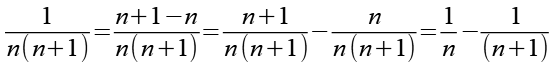 Betrachten wir den ersten Bruch. Zum Zähler addieren wir n-n ohne den Wert zu verändern. Dadurch können wir den Bruch in zwei Brüche teilen.
